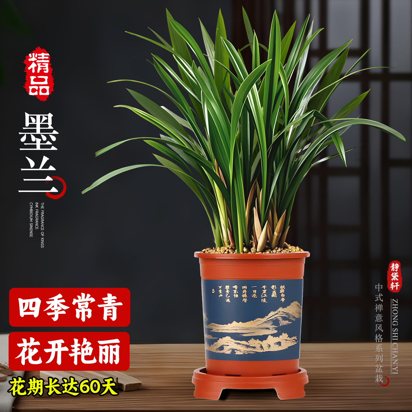 精品兰花盆栽墨兰花卉好养活绿植室内客厅办公室植物带花耐阴开花