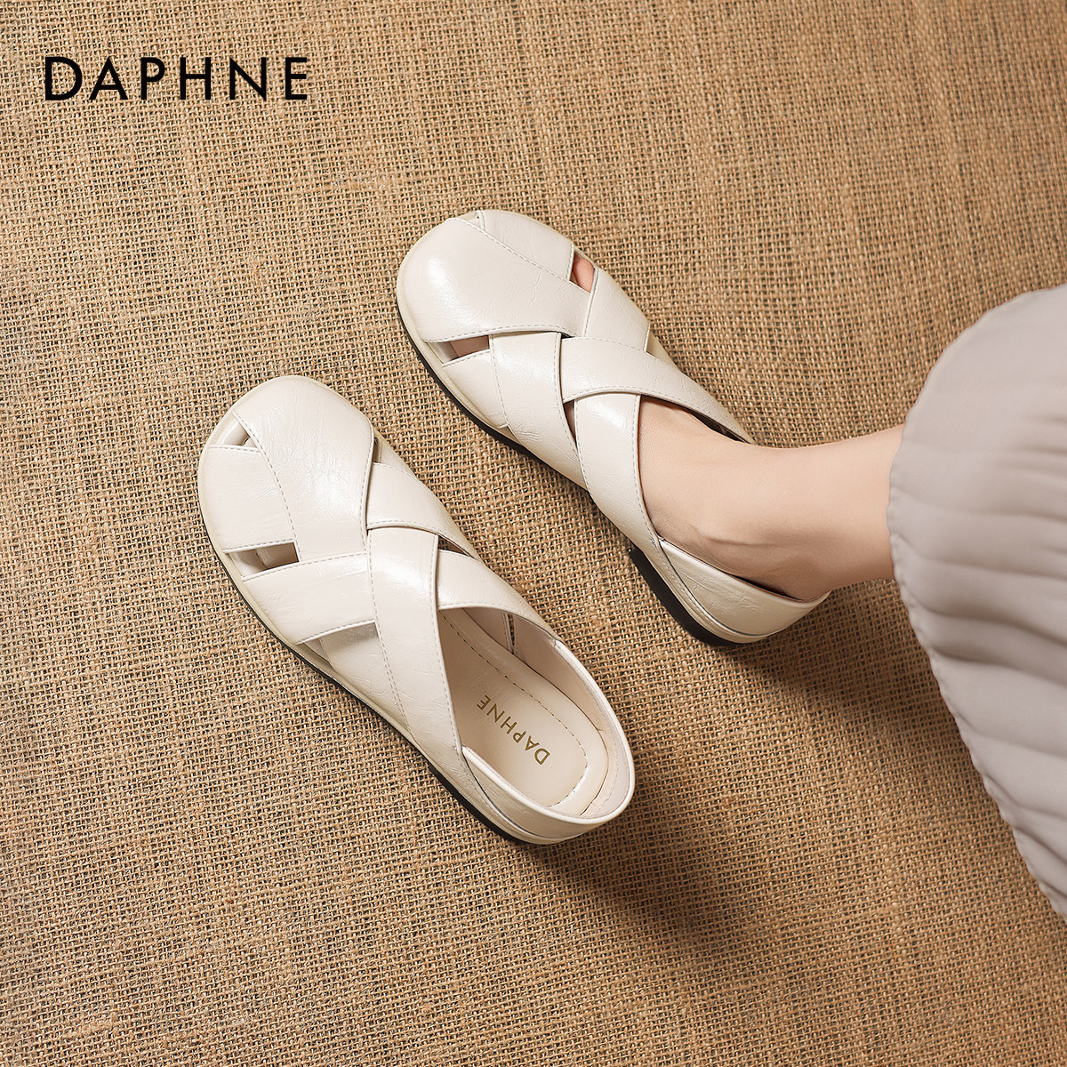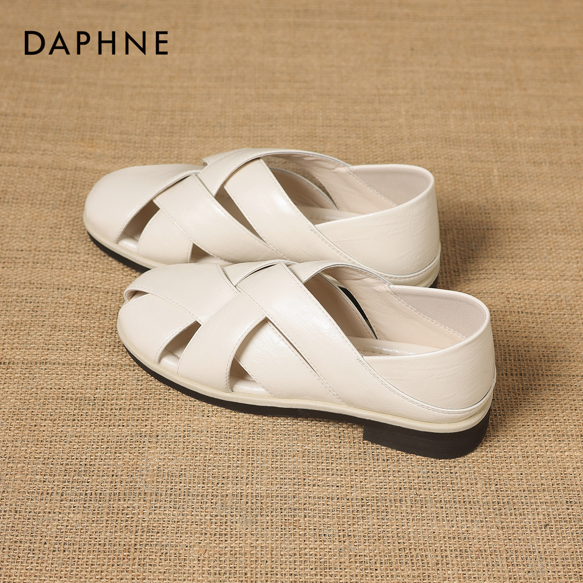 达芙妮包头半拖鞋女2026新款夏平底女鞋编织镂空透气软底懒人凉鞋