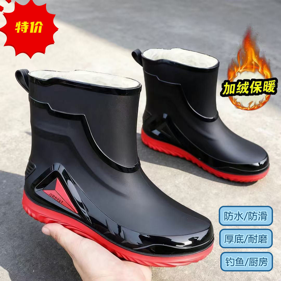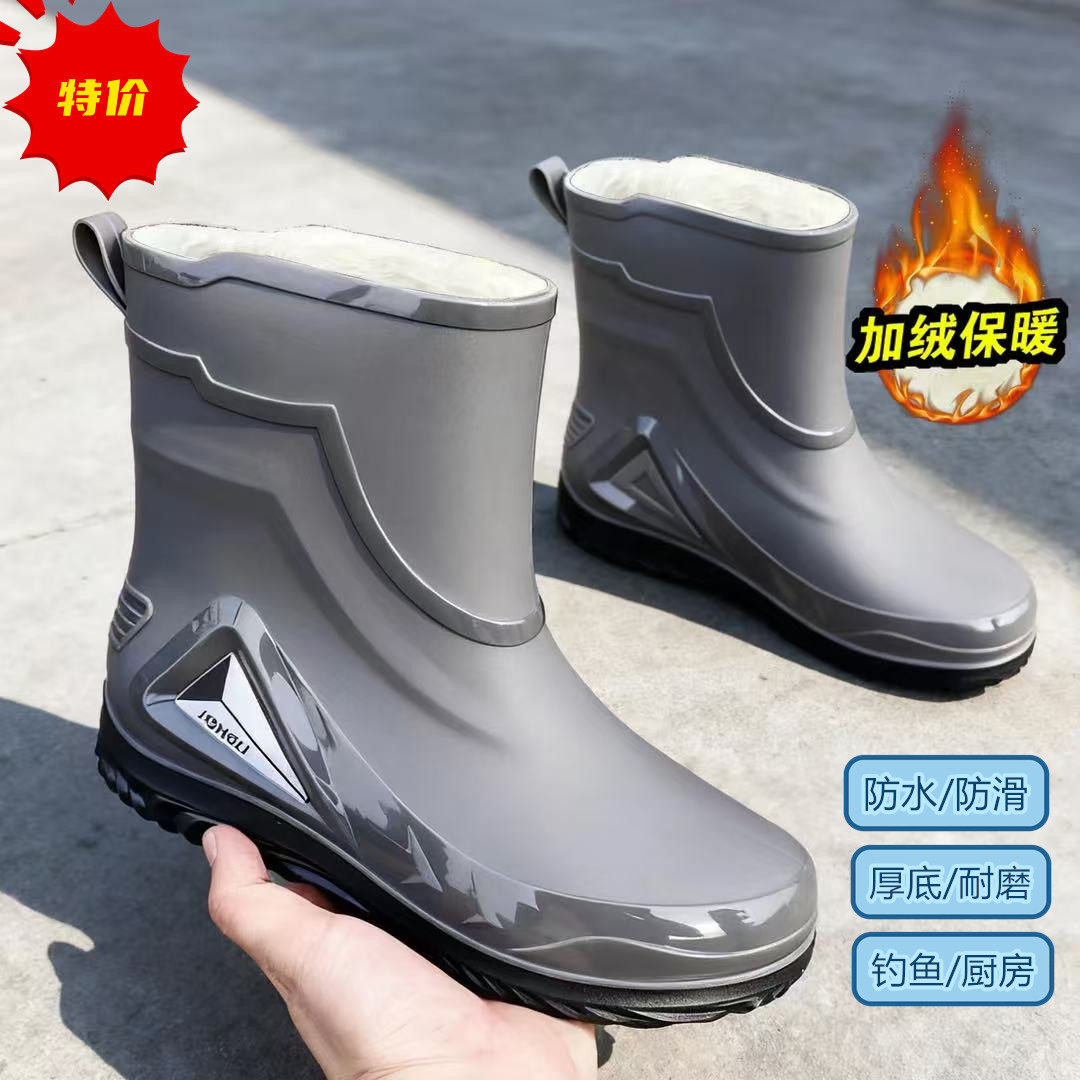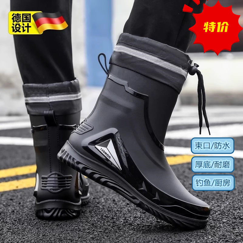 德国高级感加绒雨鞋男款时尚新款加棉保暖骑手防滑防水鞋钓鱼雨靴