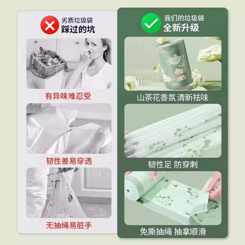 山茶花可爱苏打粉加厚特厚厨房手提式垃圾袋批发宿舍抽绳免撕年货