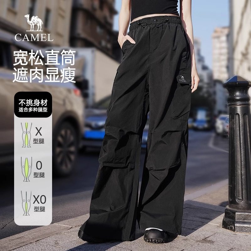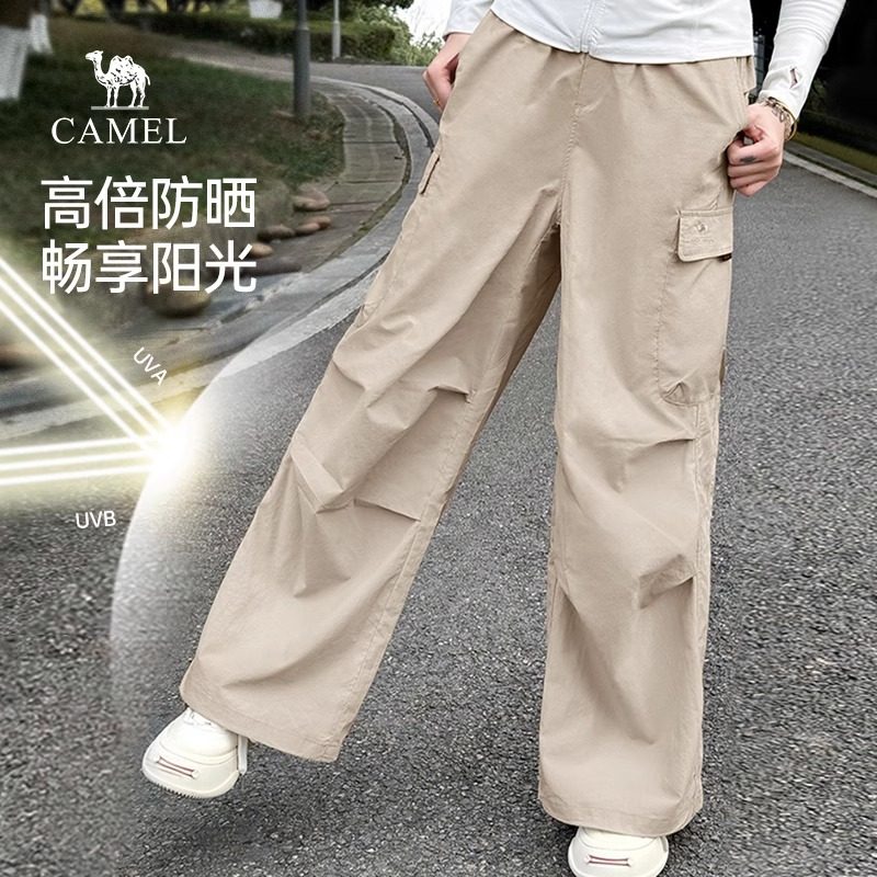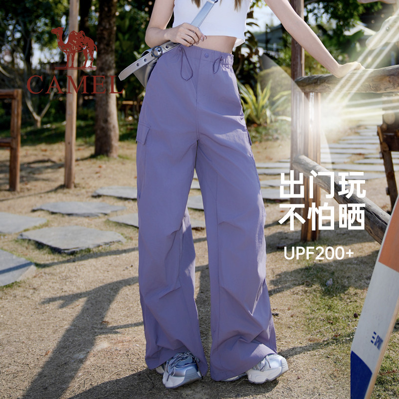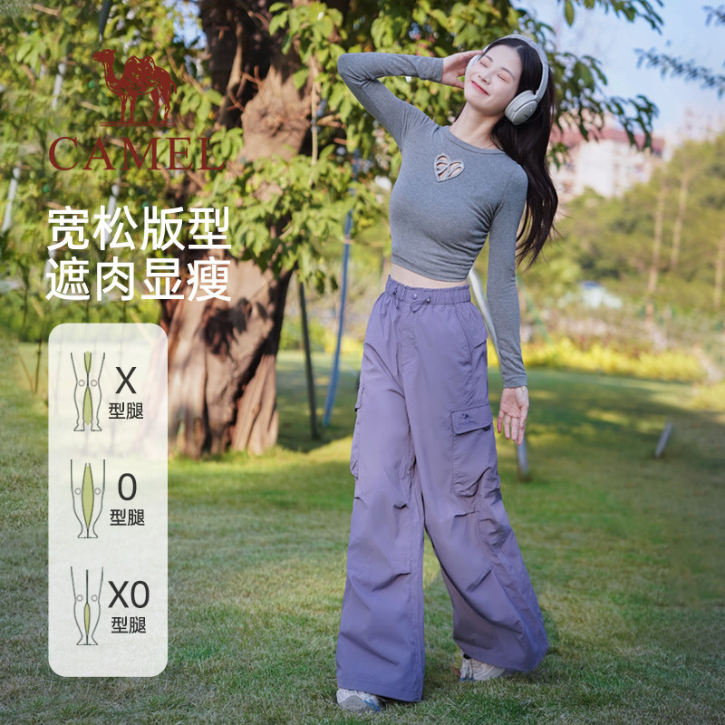 骆驼女装工装裤女夏2026新款透气阔腿裤伞兵裤休闲速干裤紫色裤子