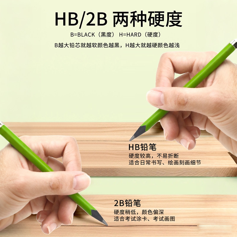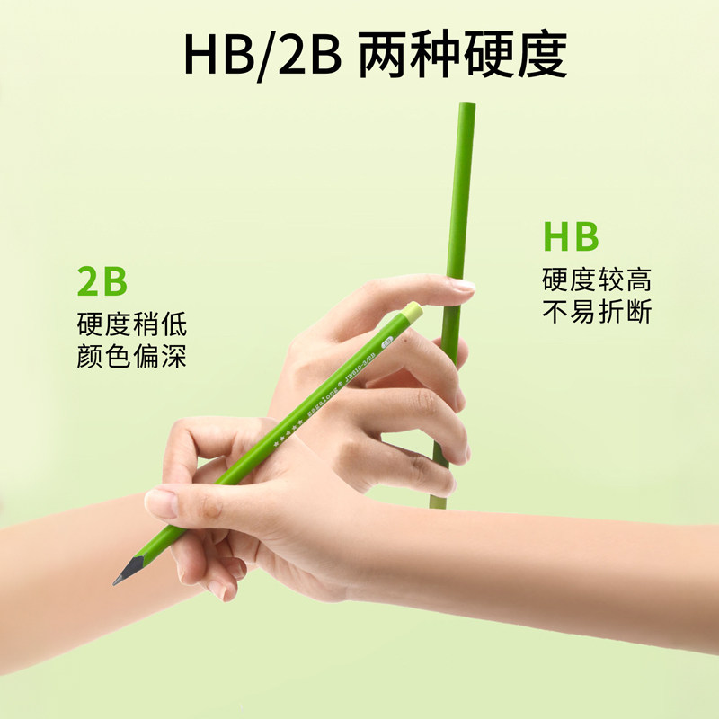 小学生铅笔2b铅笔考试专用hb书写铅笔无铅毒绿色幼儿园儿童学习用橡皮不易断原木硬度开学铅芯