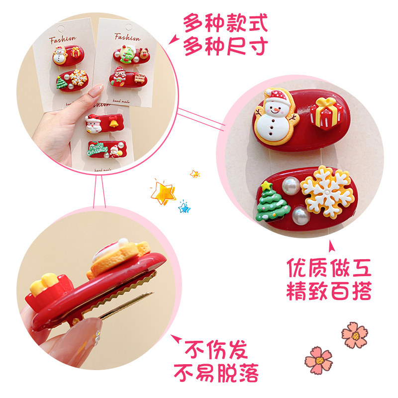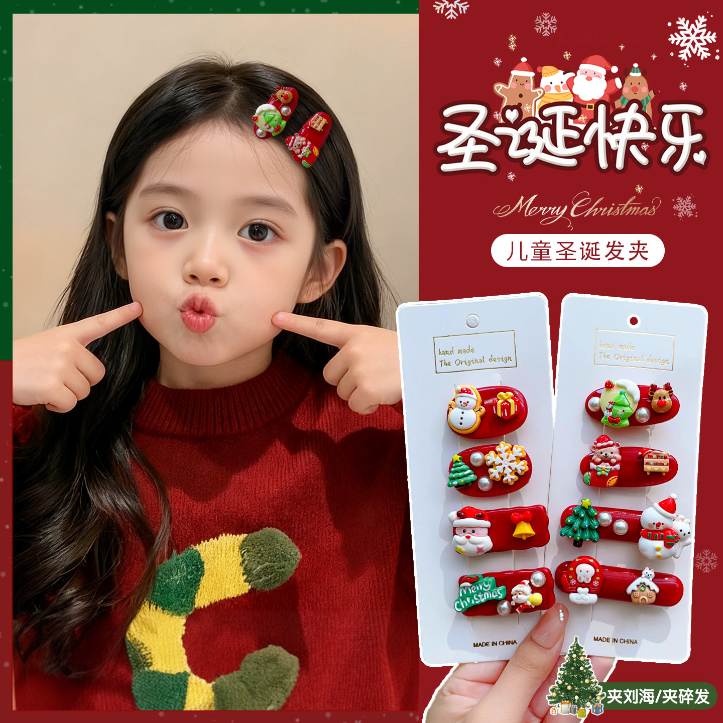 圣诞节装扮发夹可爱刘海侧边发卡儿童氛围鸭嘴夹发饰少女短发卷发