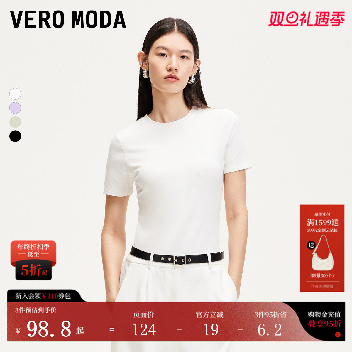 Vero ModaT恤女2025夏新款圆领修身显瘦上衣休闲短袖T恤纯棉半袖