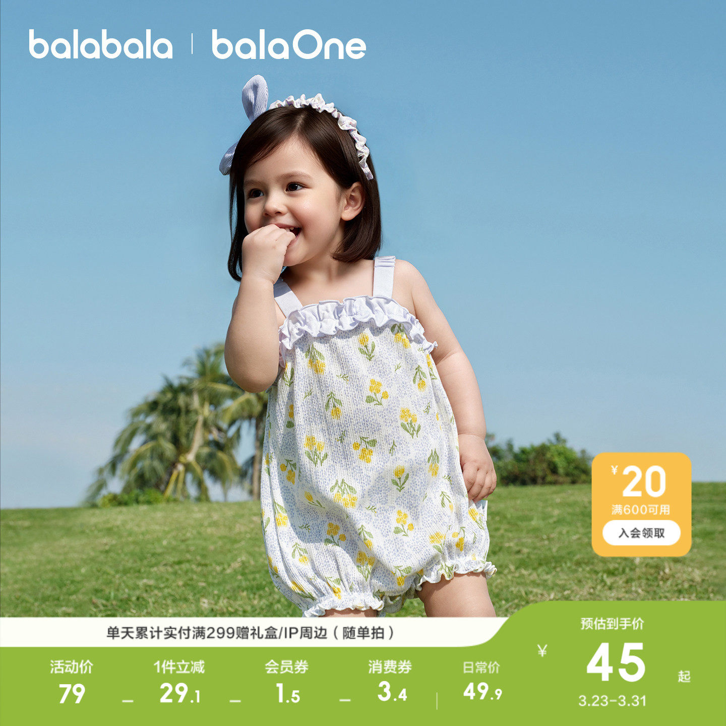 巴拉巴拉新生婴儿衣服包屁衣男女童爬服三角衣2026新款夏装甜美萌