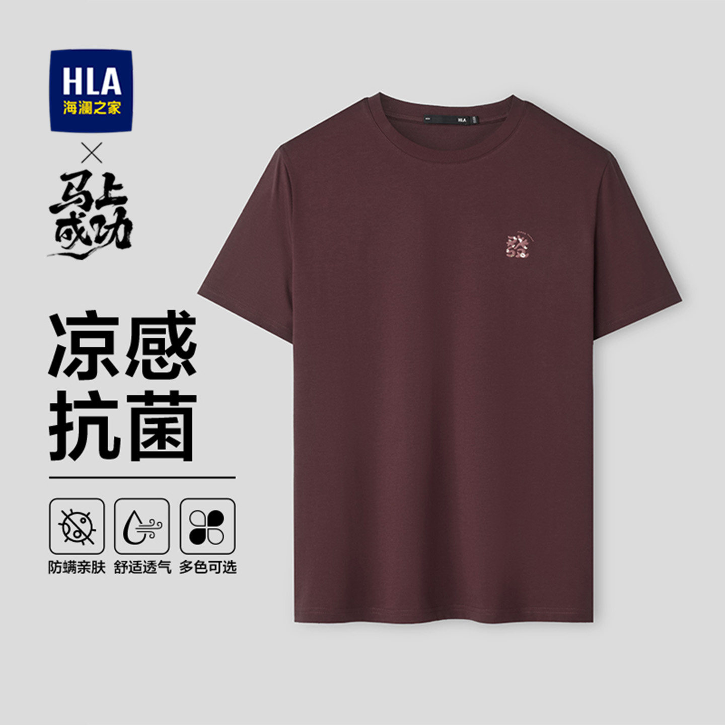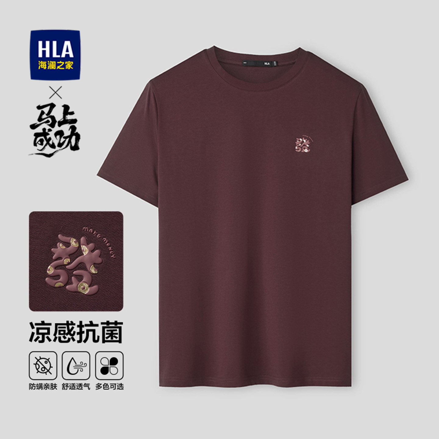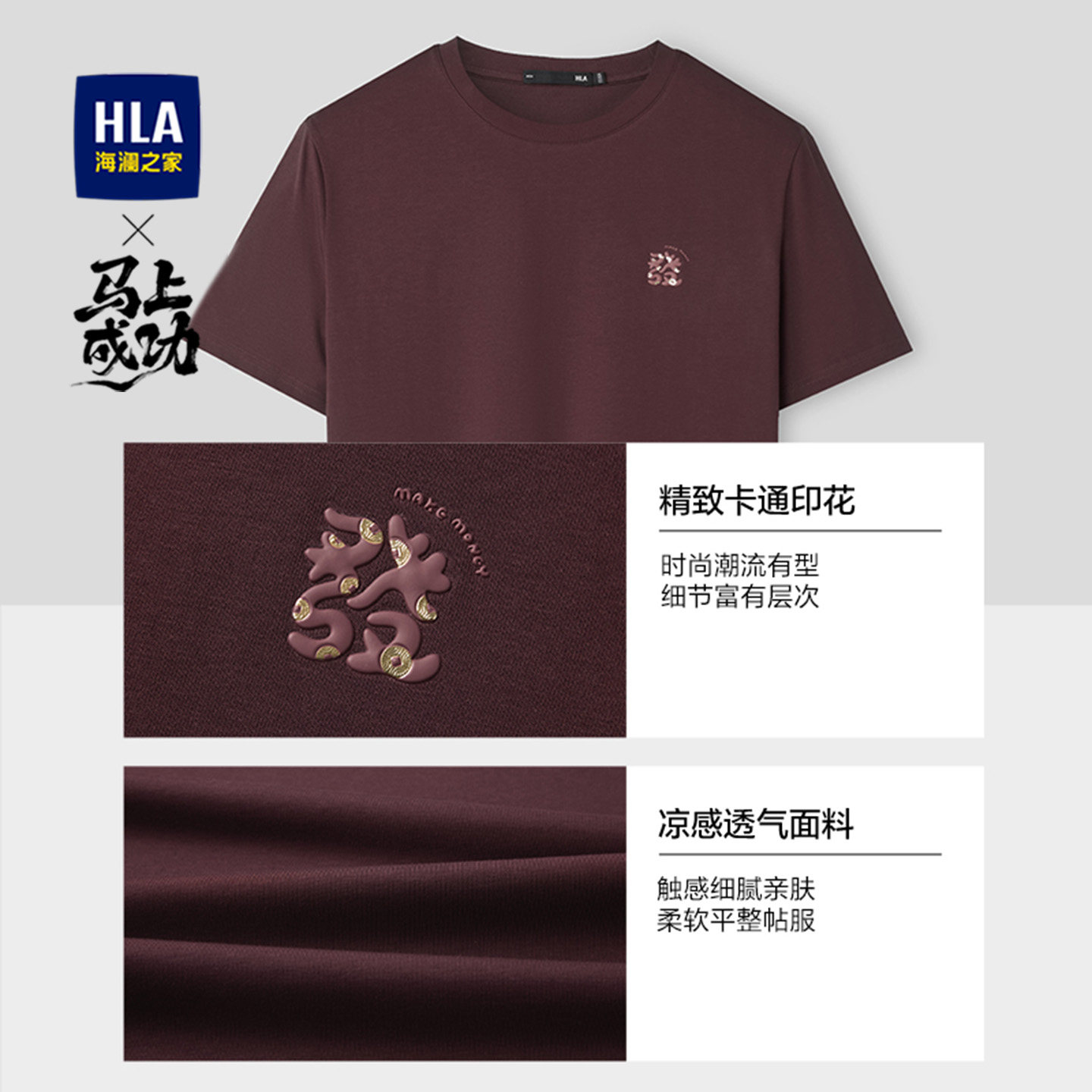 【凉感】HLA海澜之家马年贺岁系列26夏新发财大码短袖T恤上衣男装