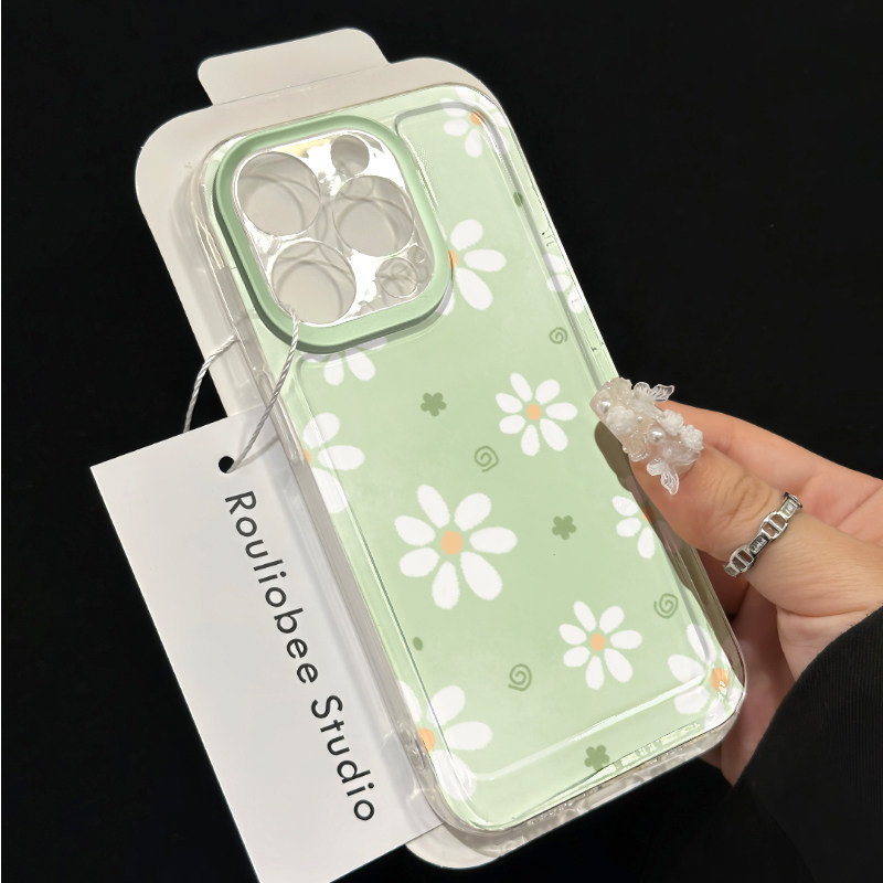 小清新绿底雏菊适用苹果13手机壳iphone14/15红米k70华为p60软壳nova11荣耀90vivox70透明oppoa93小米保护套