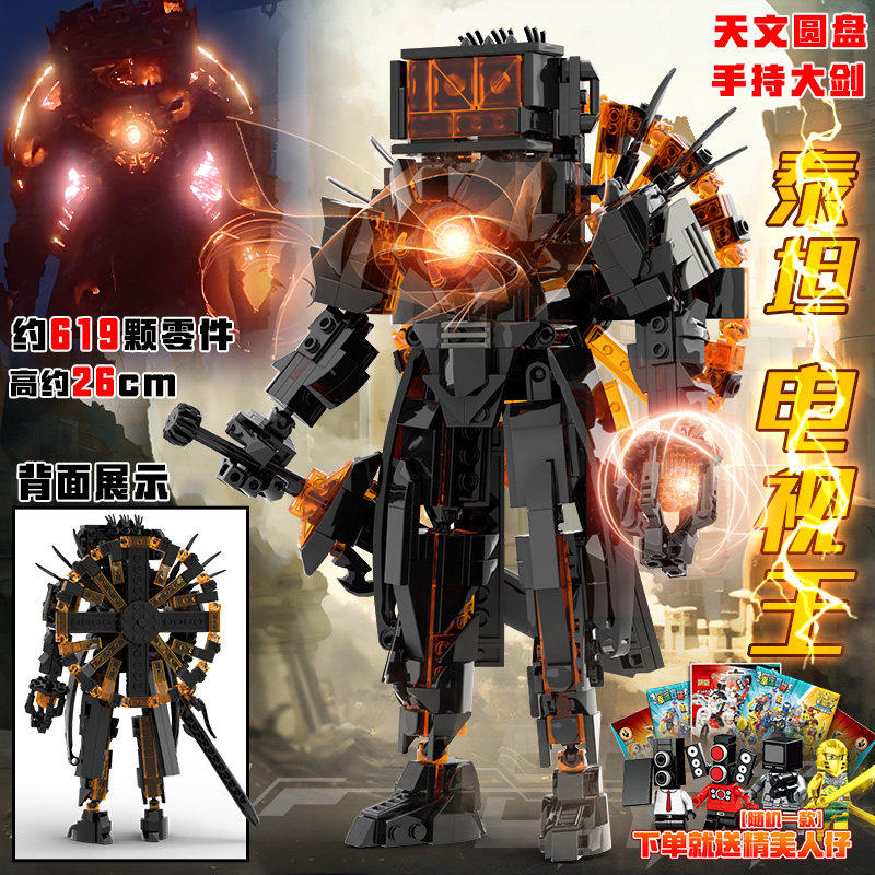 网红泰坦电视人马桶人和监控人玩具积木拼装时钟人手办男孩音响人