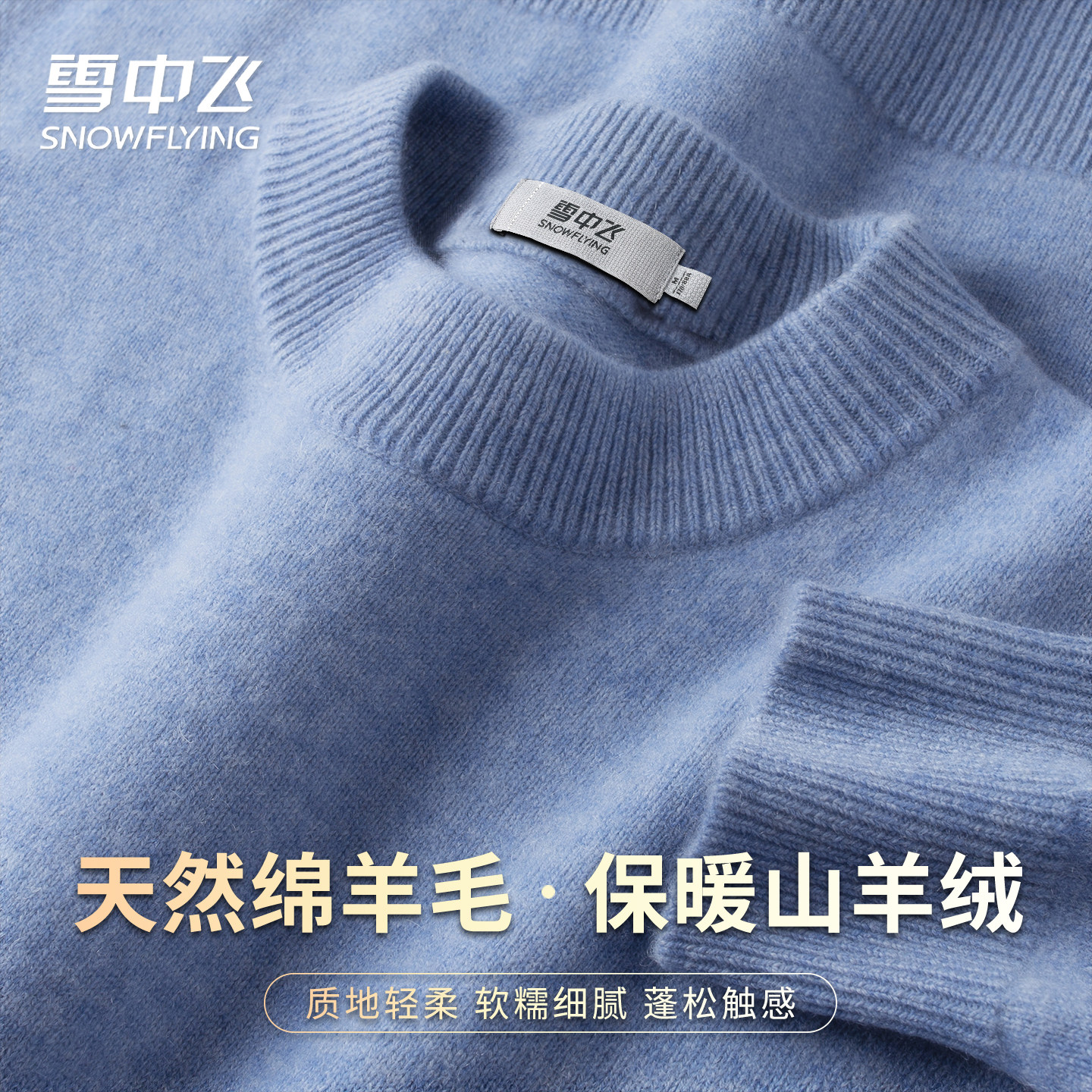 雪中飞含山羊绒轻暖羊毛衫秋冬纯色基础毛衣男温暖厚实打底衫W