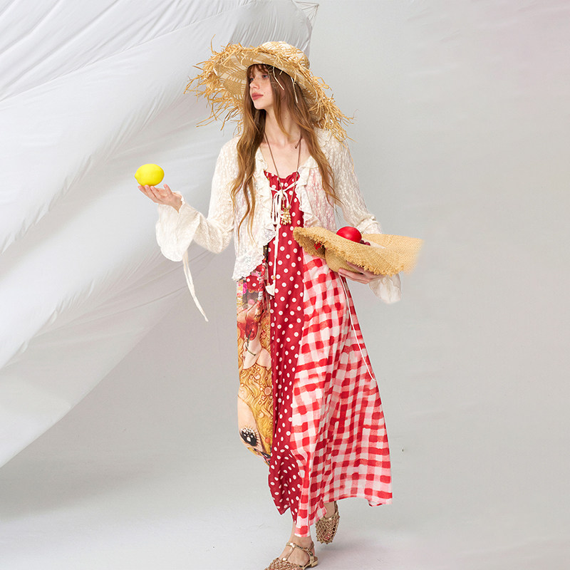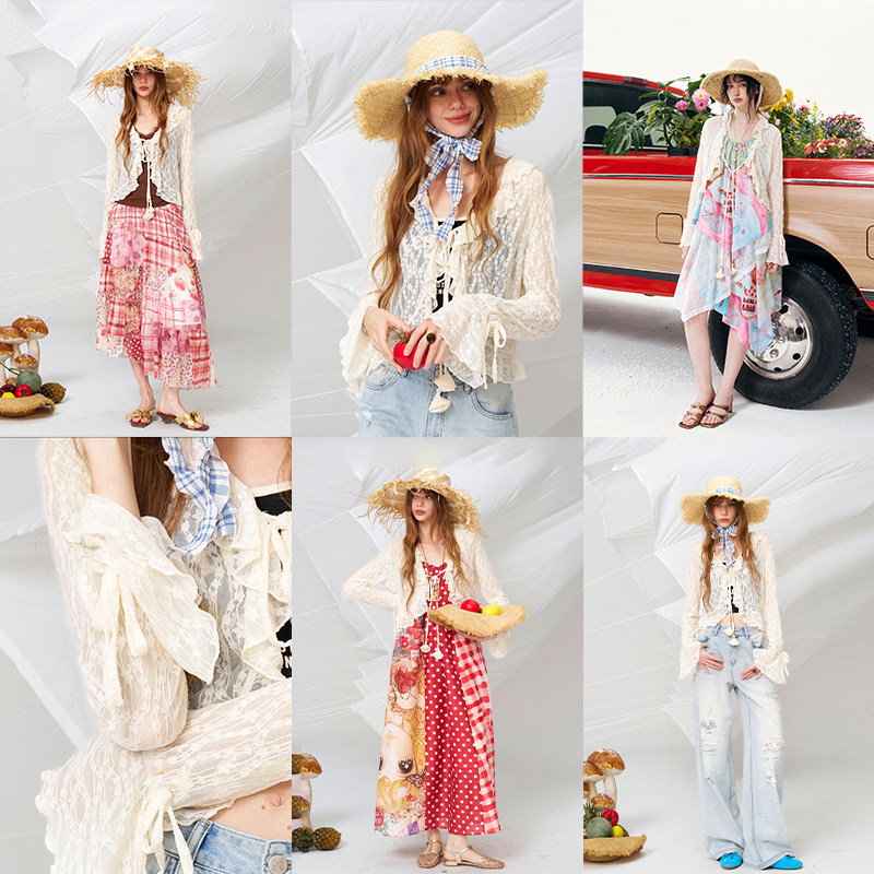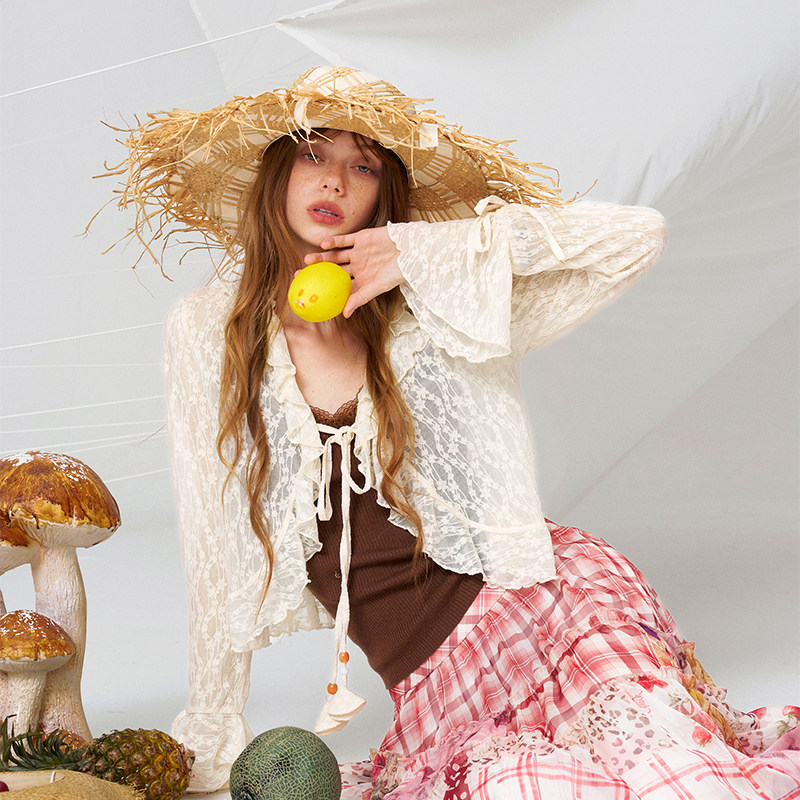 妖精的口袋荷叶边拼接白色蕾丝衫女2026夏新款度假风甜美白色开衫