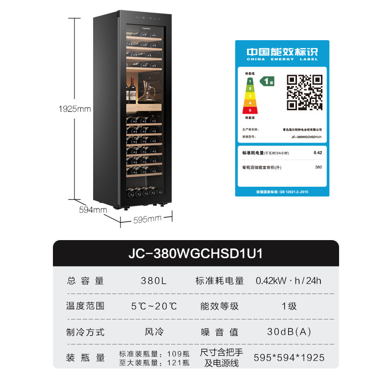 【新品】卡萨帝380L大容积酒窖级恒温恒湿红酒柜家用办公室葡萄酒