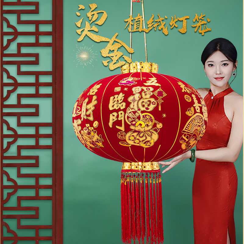 大红灯笼2025新款吊灯中国风春节装饰户外大门口阳台插电氛围植绒
