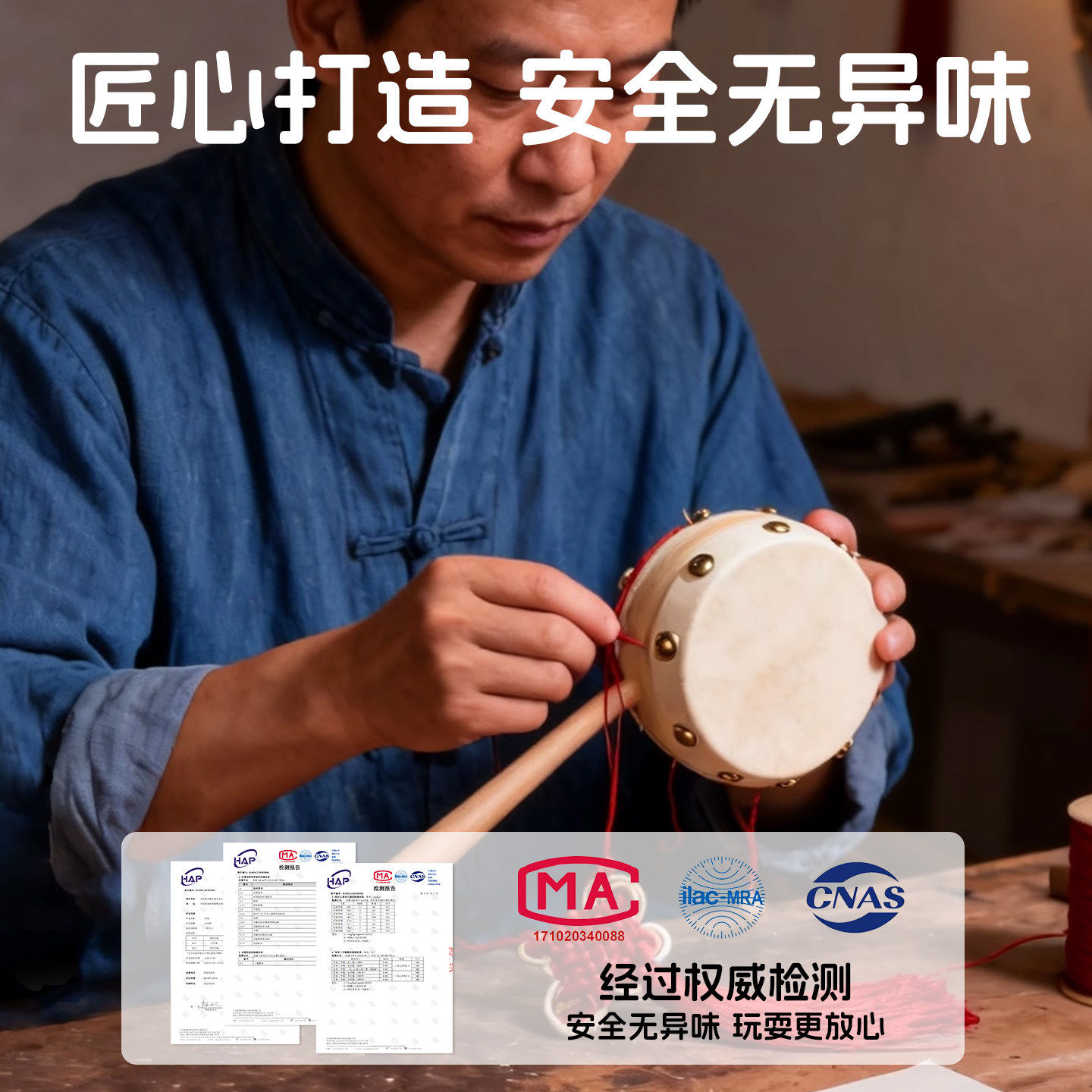 12生肖拨浪鼓木质老式羊皮新生婴儿可啃咬0-1岁宝宝手工传统玩具