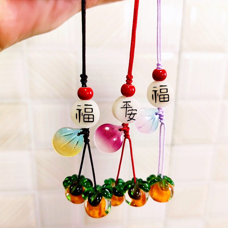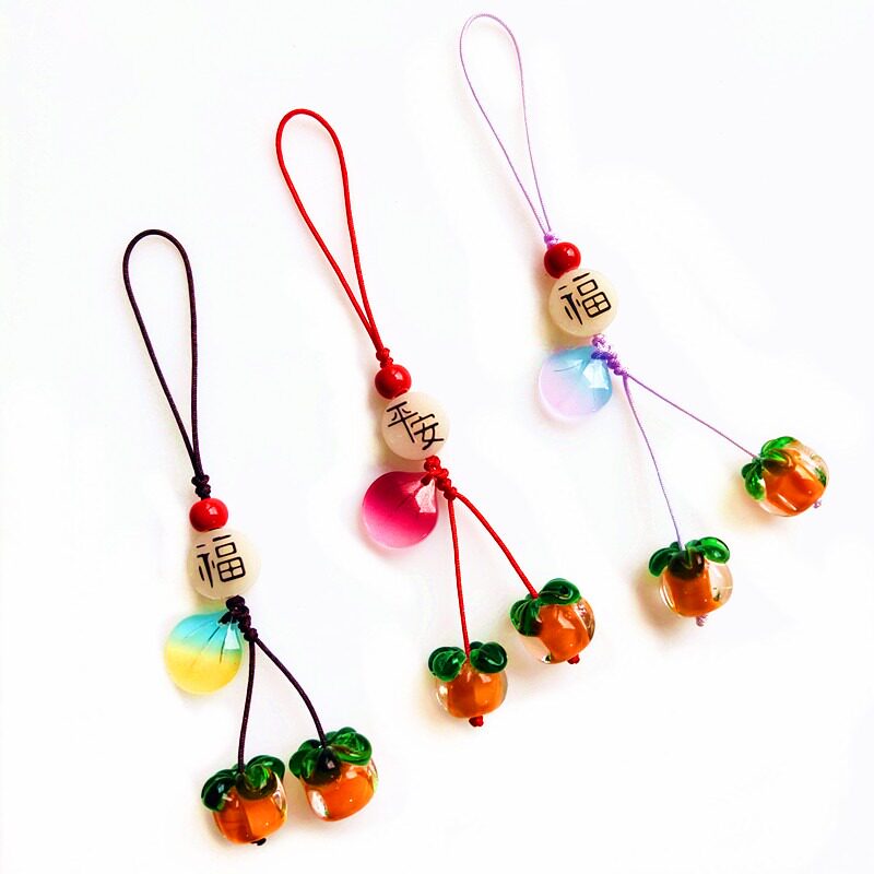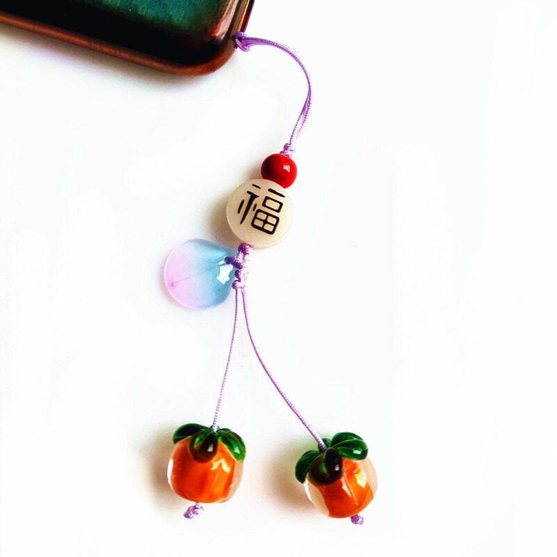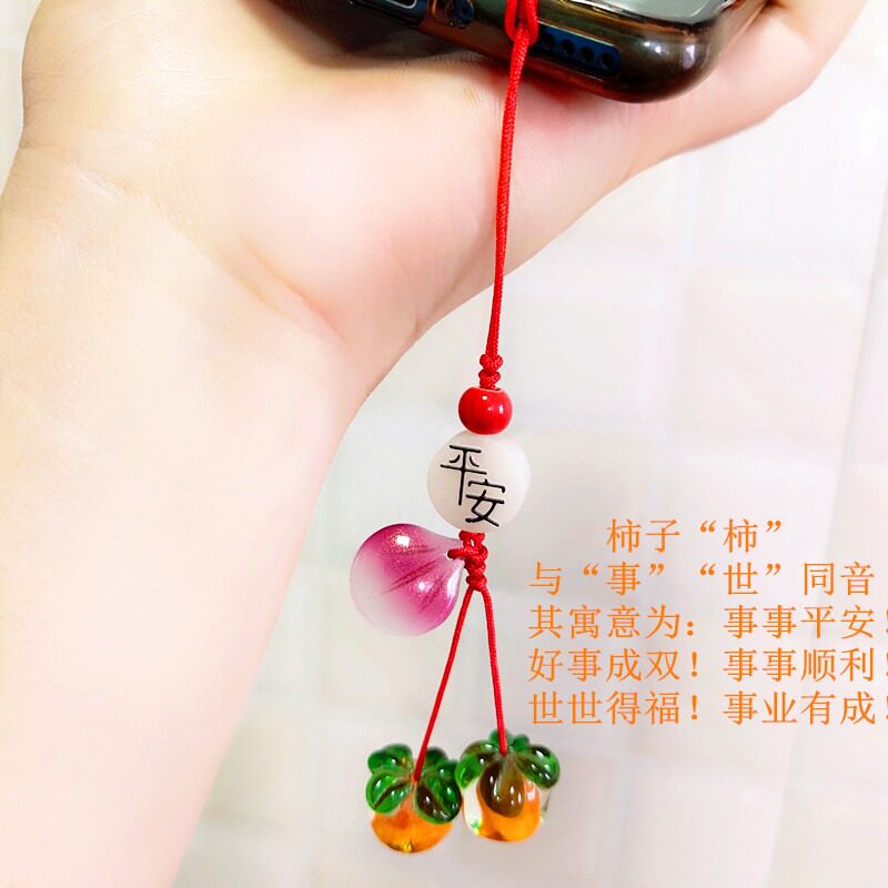 手机挂绳短款柿柿如意玛瑙柿子挂坠复古绝美日系少女琉璃柿叶有成手机壳挂件男背包钥匙扣U盘防丢装饰配件