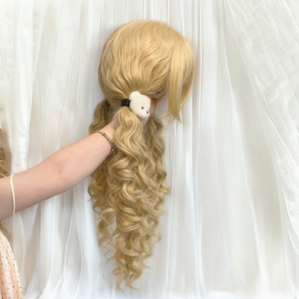 小熊奈奈喵喵岛假发女水母头公主切双马尾长卷发Lolita假发全头套