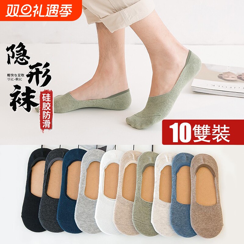 情侣袜子纯棉男女船袜夏季短袜薄款隐形浅口防臭吸汗硅胶防滑袜子