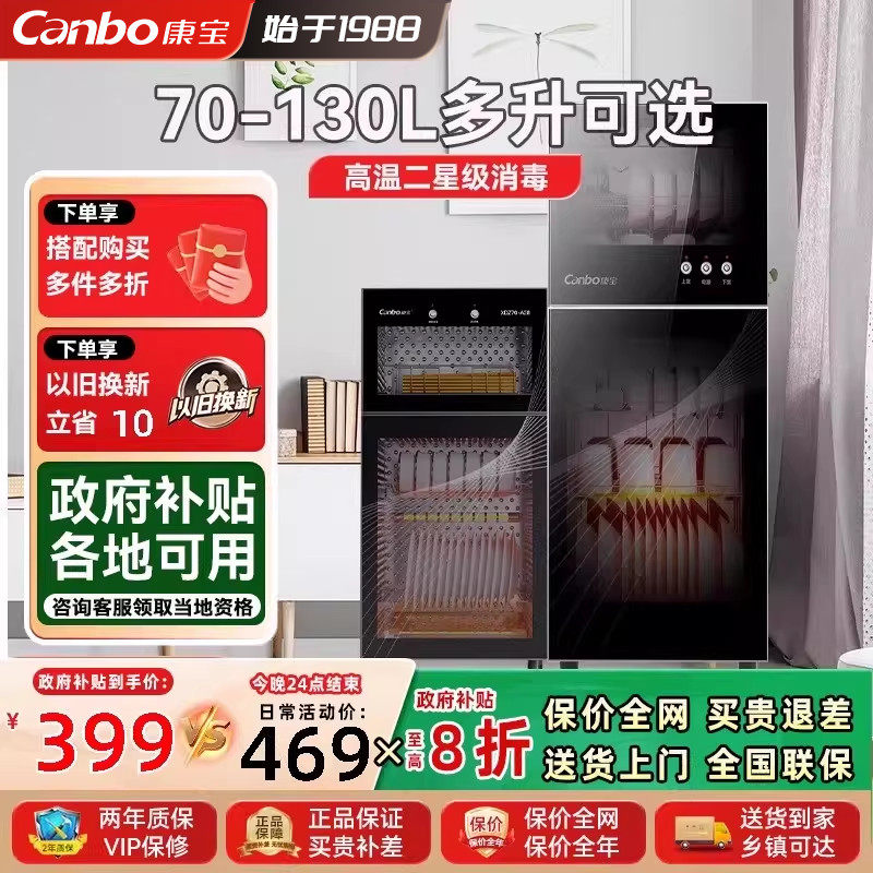 康宝立式消毒柜小型家用厨房餐具收纳烘干一体高温二星碗筷柜A38