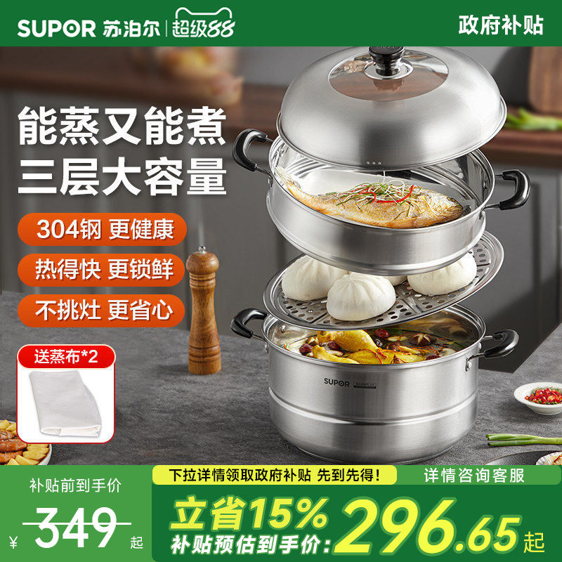 苏泊尔蒸锅家用304不锈钢三层蒸锅电磁炉燃气2025新款蒸煮汤锅