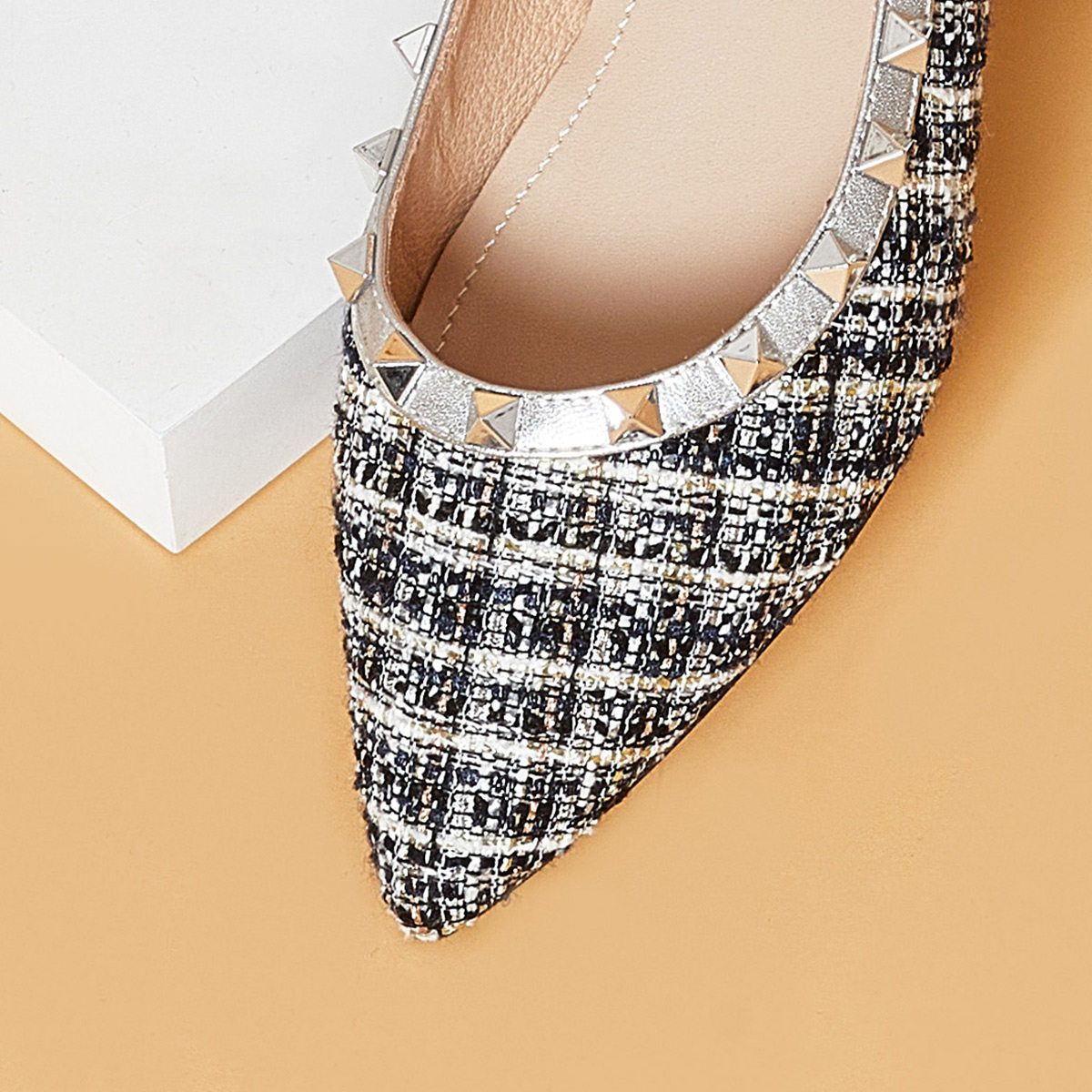 米霏!真皮~尖头铆钉平底单鞋女秋冬浅口内增高软底瓢鞋大码女鞋