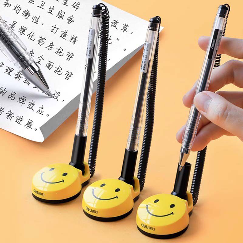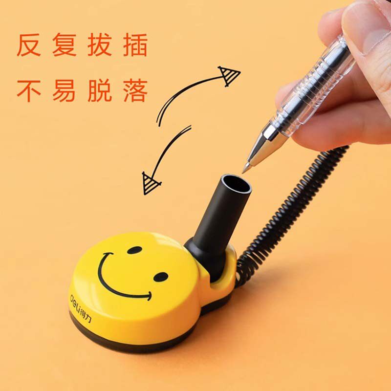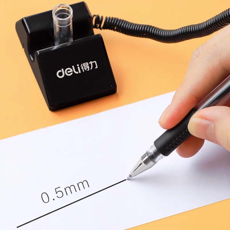 得力台笔固定笔座带线办公签字笔柜台桌面可粘贴防丢吧台笔器带绳中性笔商务银行前台服务柜台粘在桌子上的笔