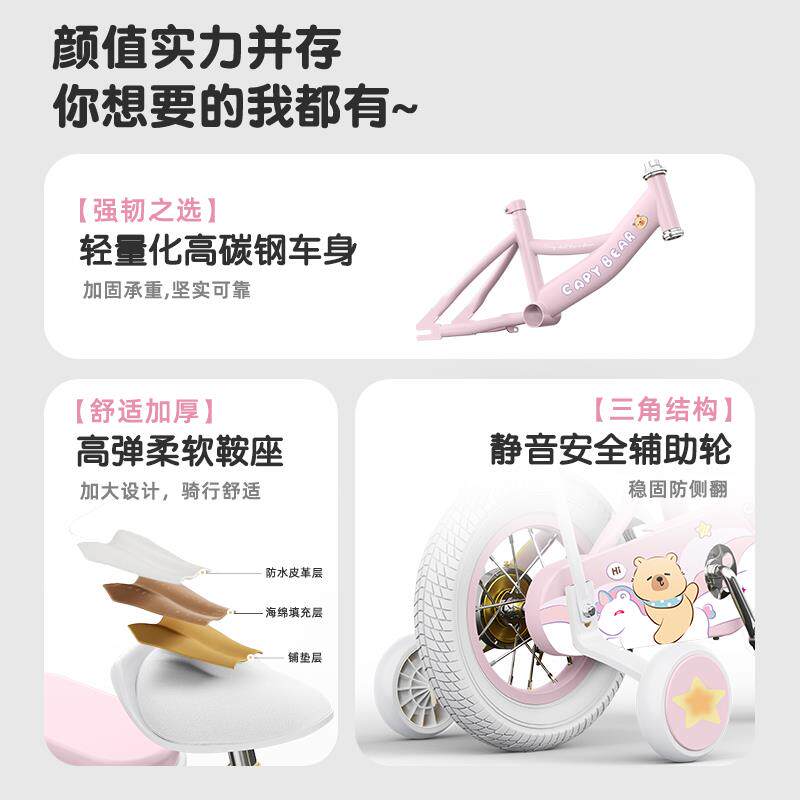 卡皮bala儿童自行车3岁到6岁8到12岁小孩7儿童款女童脚踏单车巴拉