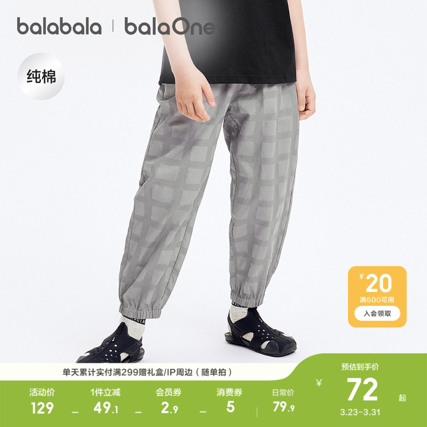 巴拉巴拉童装男童裤子宝宝防蚊裤儿童长裤纯棉夏装束脚裤休闲薄款