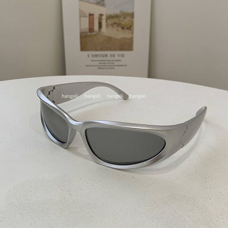 HGL男女款赛博朋克眼镜科技感太阳镜高级骑行银色防紫外线护目镜