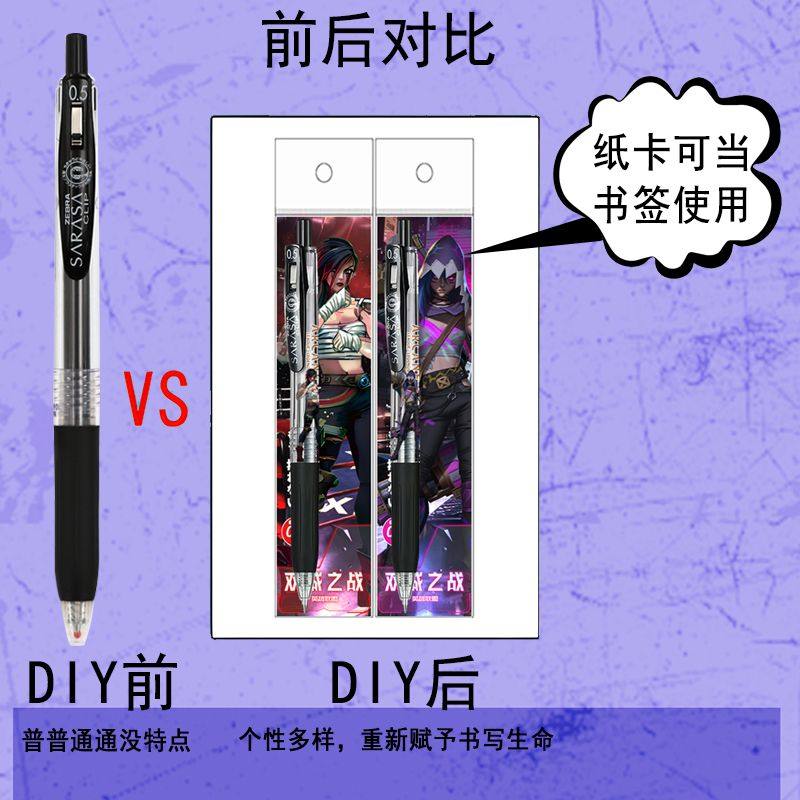 日本ZERBA斑马英雄联盟双城之战2限定中性笔DIY贴纸款野火帮艾克