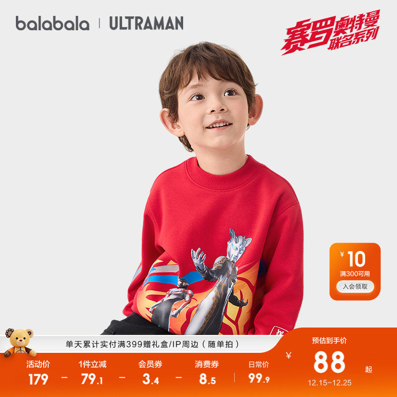 【奥特曼】巴拉巴拉童装儿童加绒卫衣新款冬装男童长袖t恤百搭潮