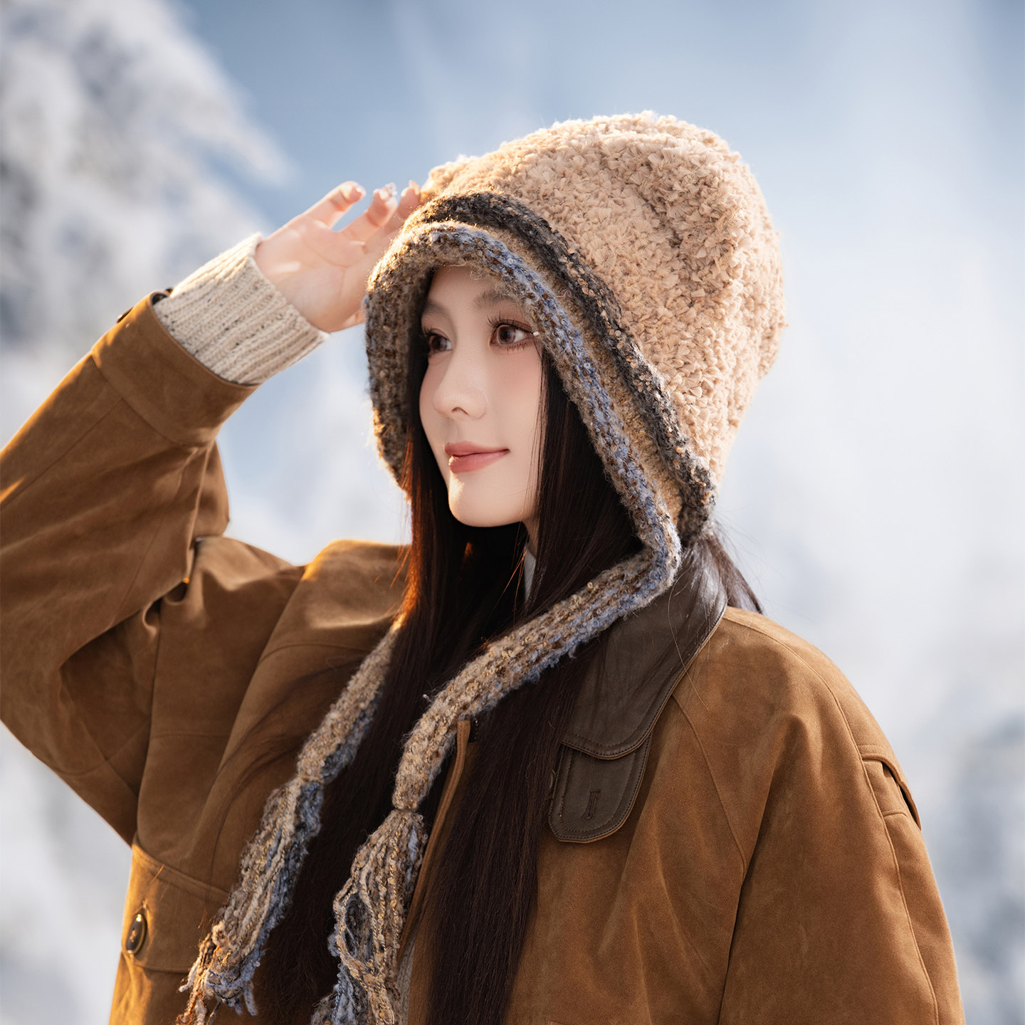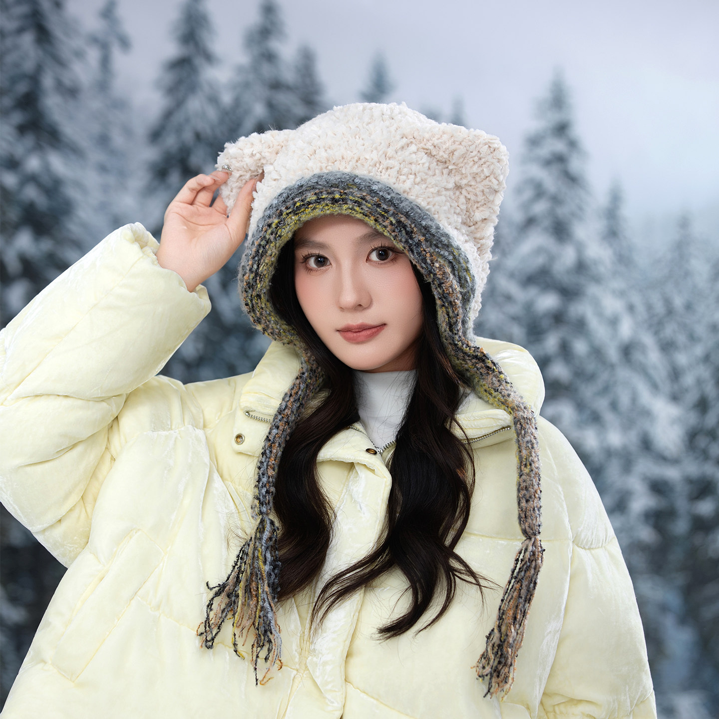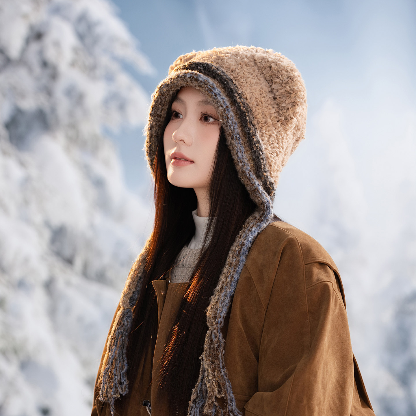 包头帽子护耳女秋冬季保暖加绒厚针织帽骑行户外防寒可爱毛绒帽J