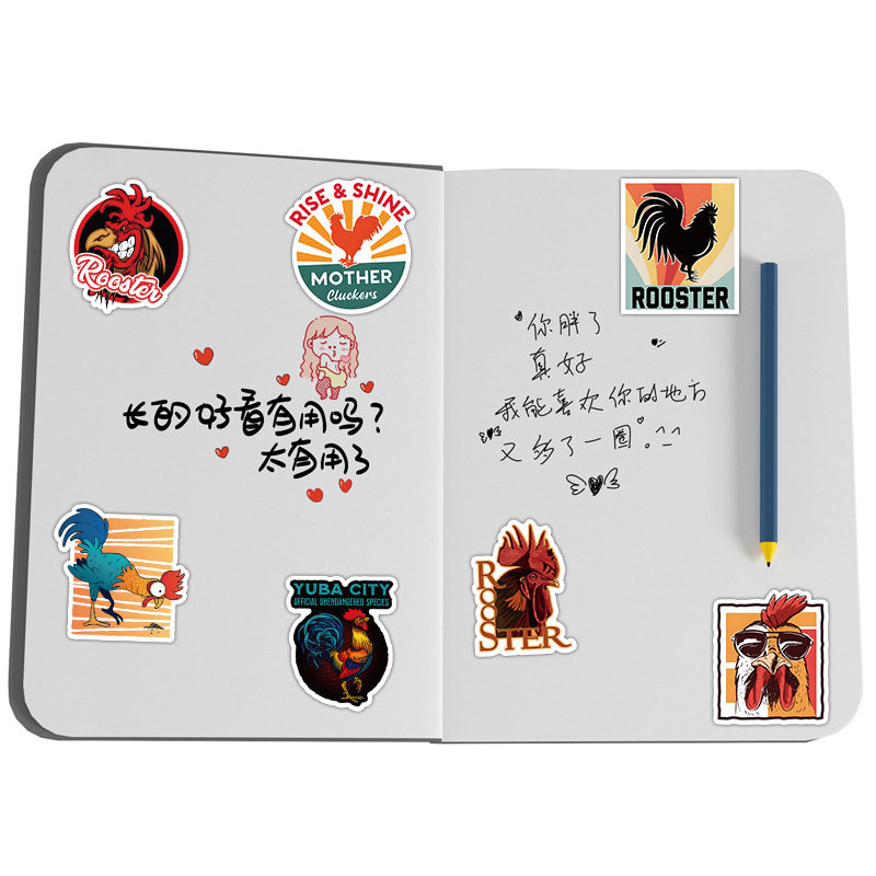 50张卡通可爱动物大公鸡雄鸡战斗鸡贴纸笔记本电脑吉他水杯手机壳