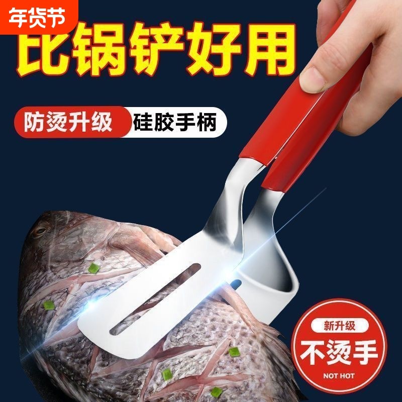304不锈钢煎铲夹子煎鱼铲牛排铲多功能厨房烙饼锅铲煎炸翻面防烫