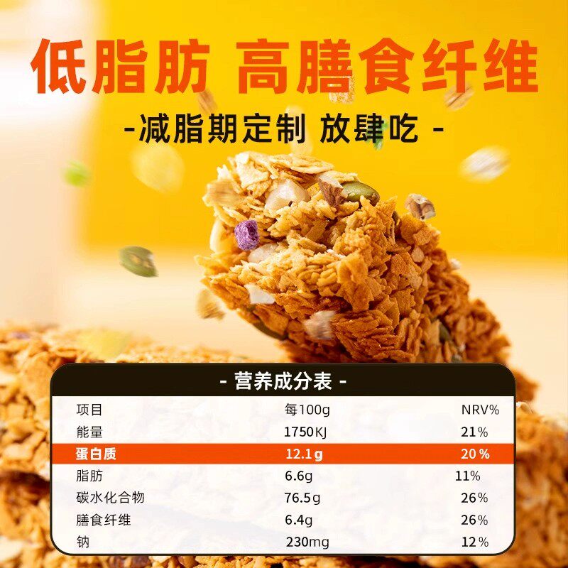蛋白棒代餐能量燕麦谷物棒饼干减低0无糖精脂肪卡热量饱腹零食品