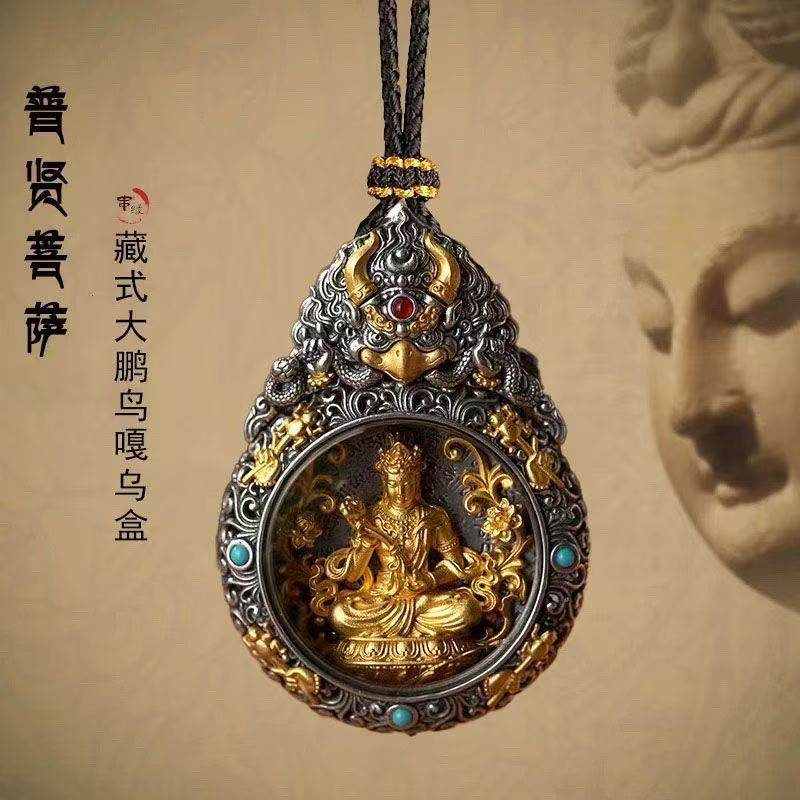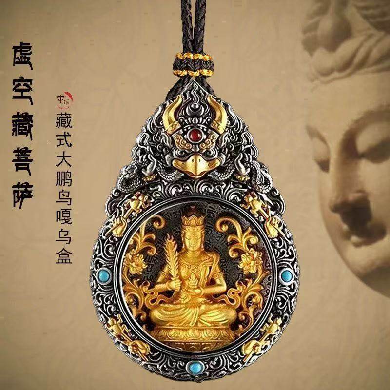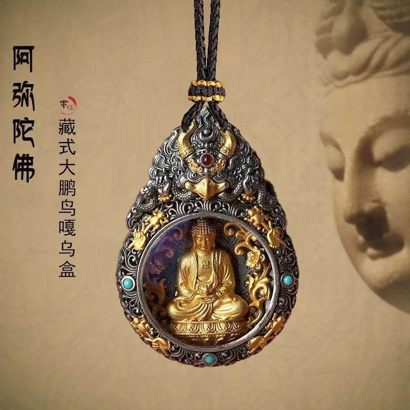 藏式嘎乌盒泰银大鹏鸟十二生肖本命佛吊坠黄财神项链男女通本命年