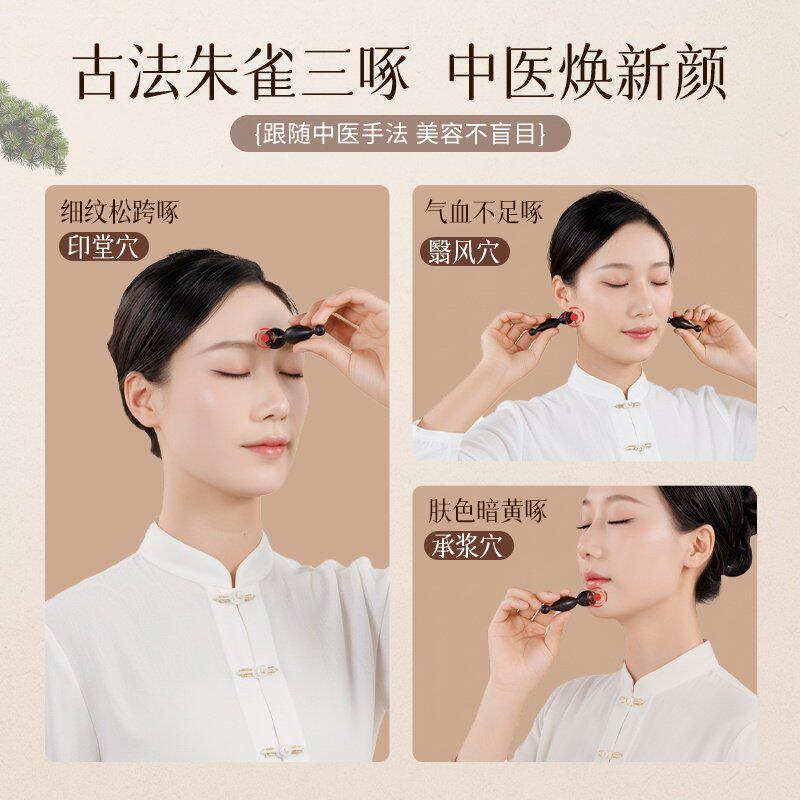 朱雀三啄面部按摩器小莲蓬实木黄铜点穴棒脸部眼部拨筋棒美容工具