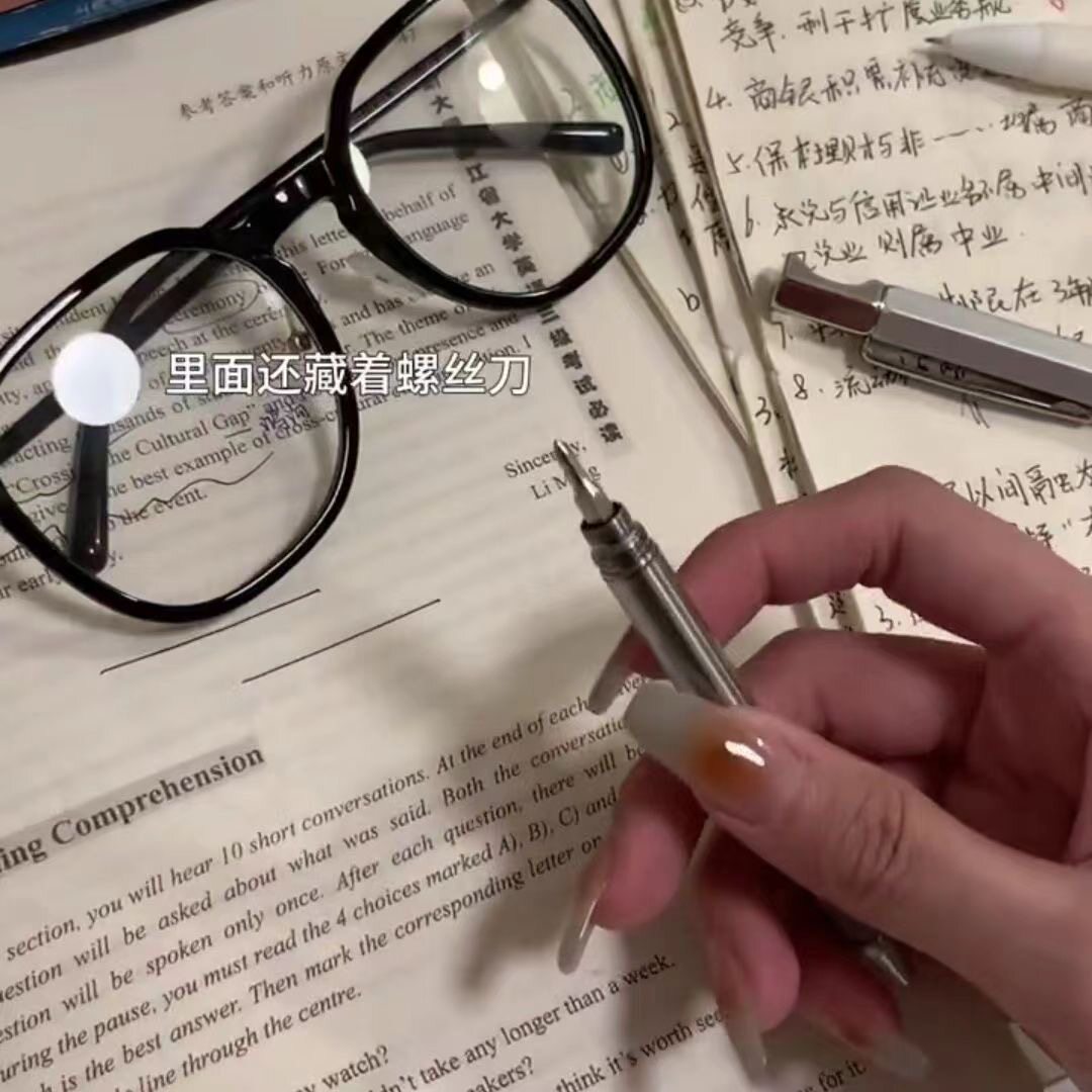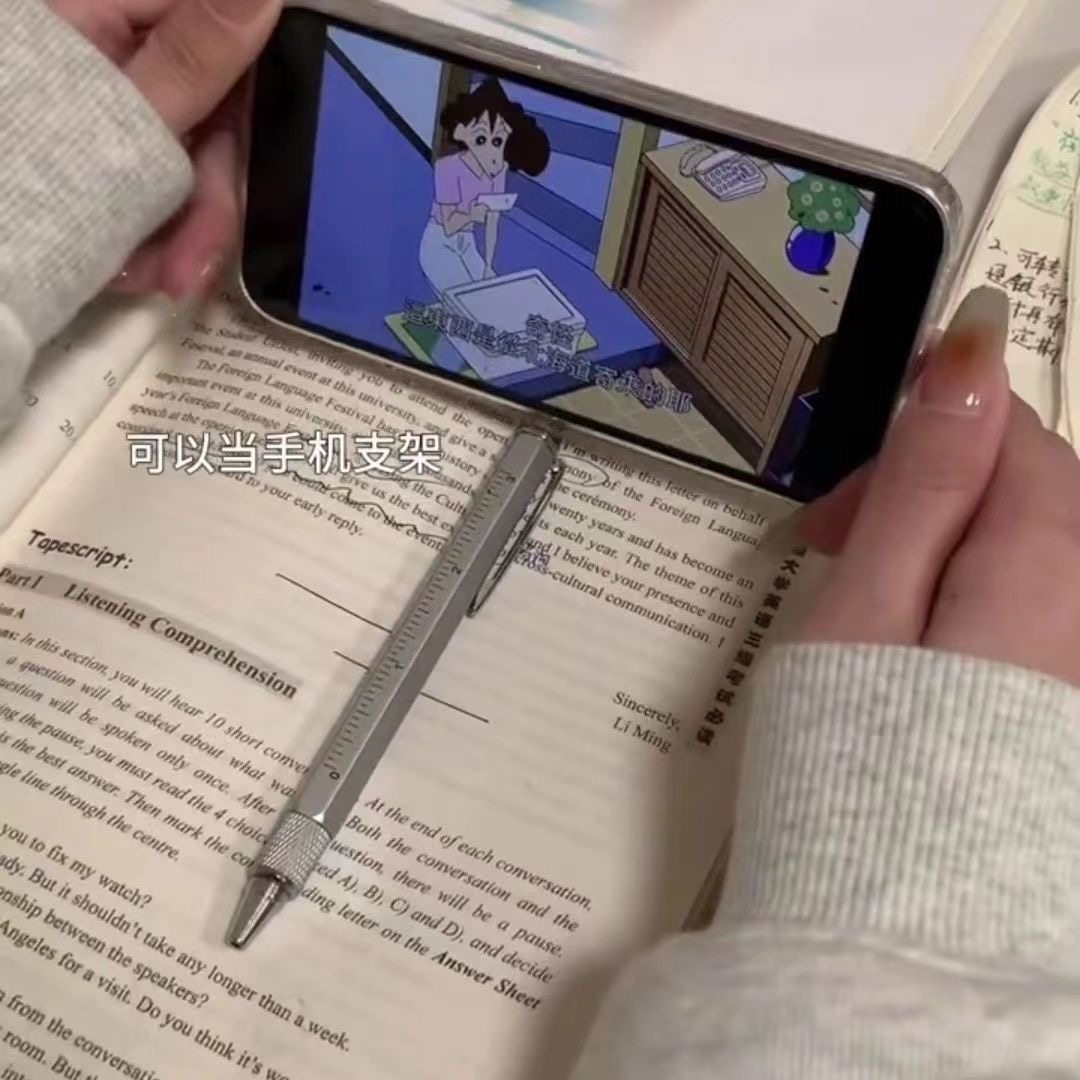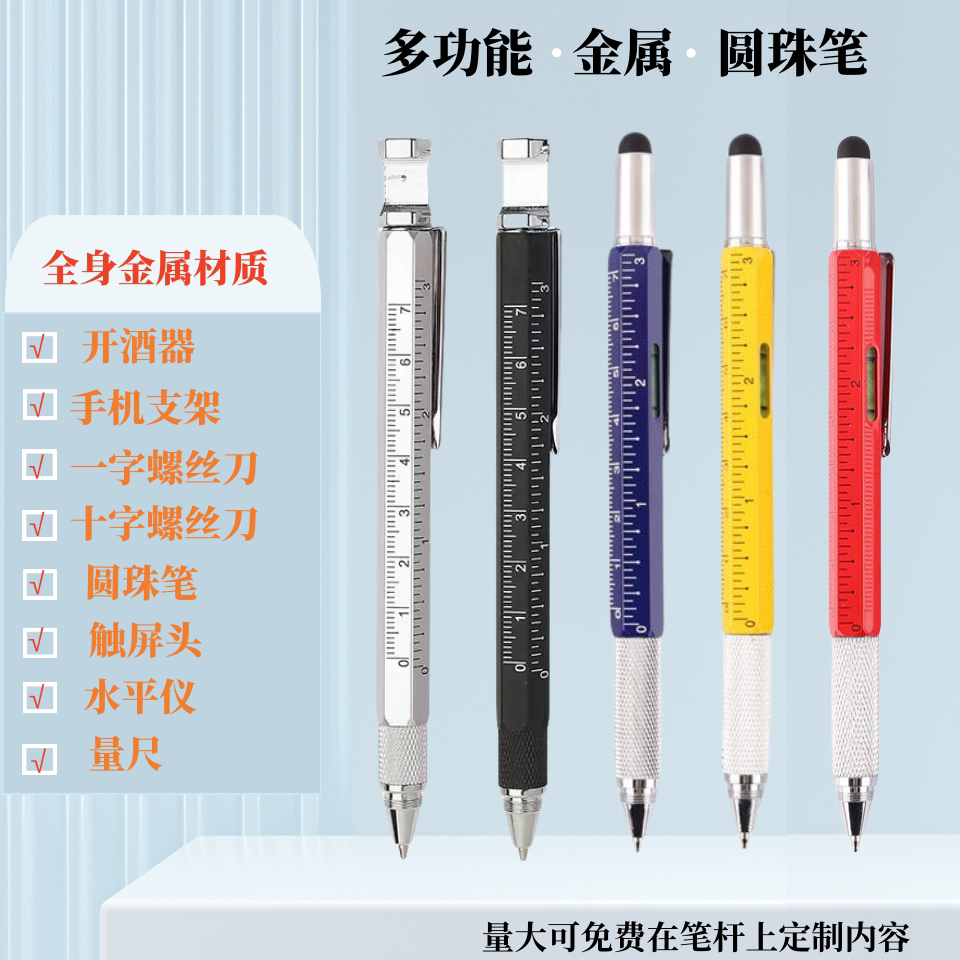 多功能六合一工具笔金属笔圆珠笔带触碰头量尺子螺丝刀开啤酒瓶盖