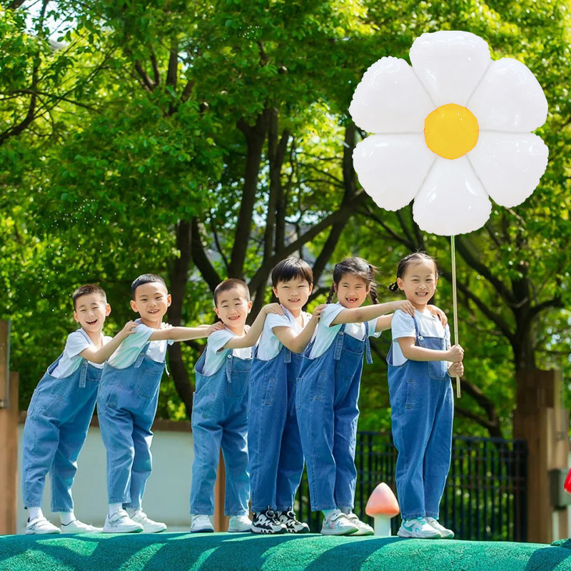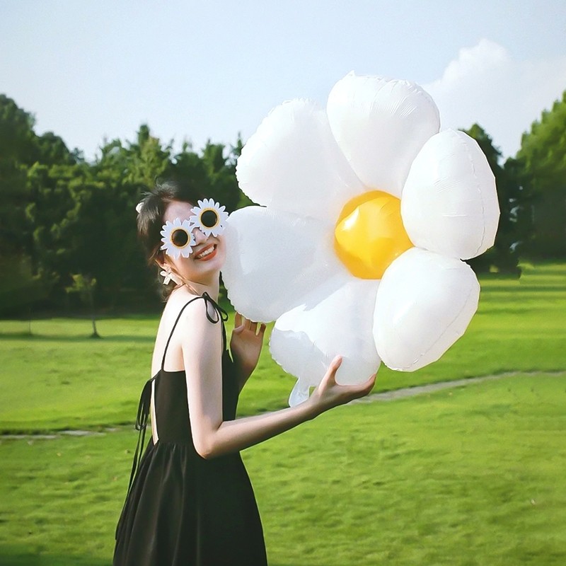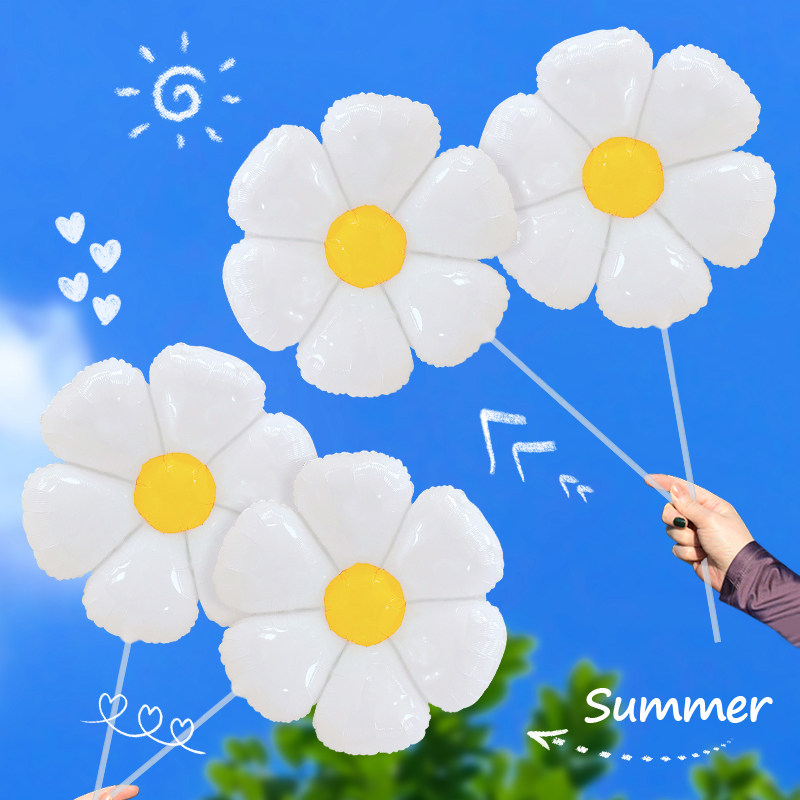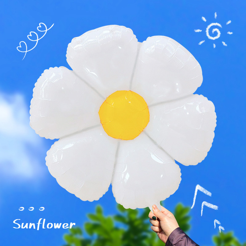 白色小雏菊铝膜气球儿童宝宝生日装饰户外活动布置太阳花氛围鸡蛋