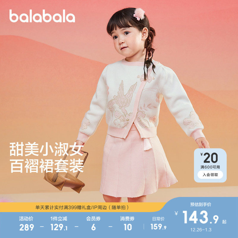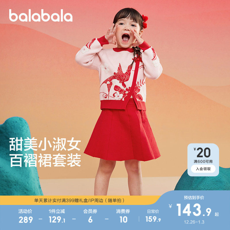巴拉巴拉童装儿童套装女童秋冬装红色新中式两件套提花洋气小童