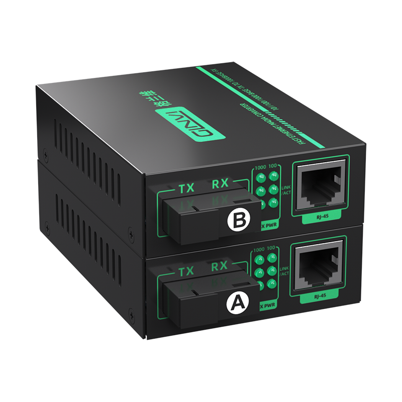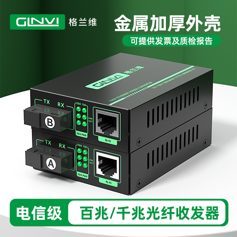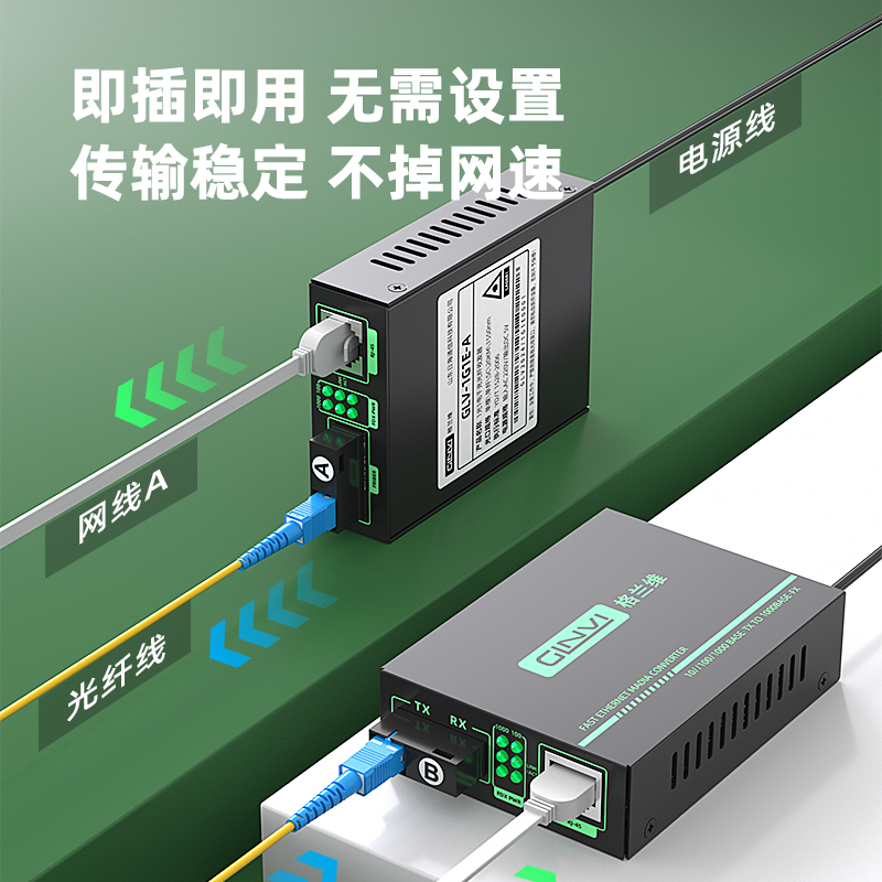 格兰维 光纤收发器一对百兆千兆光电转换器单模单纤SC光纤线转网线接口网络视频监控传输一光四电一光八电