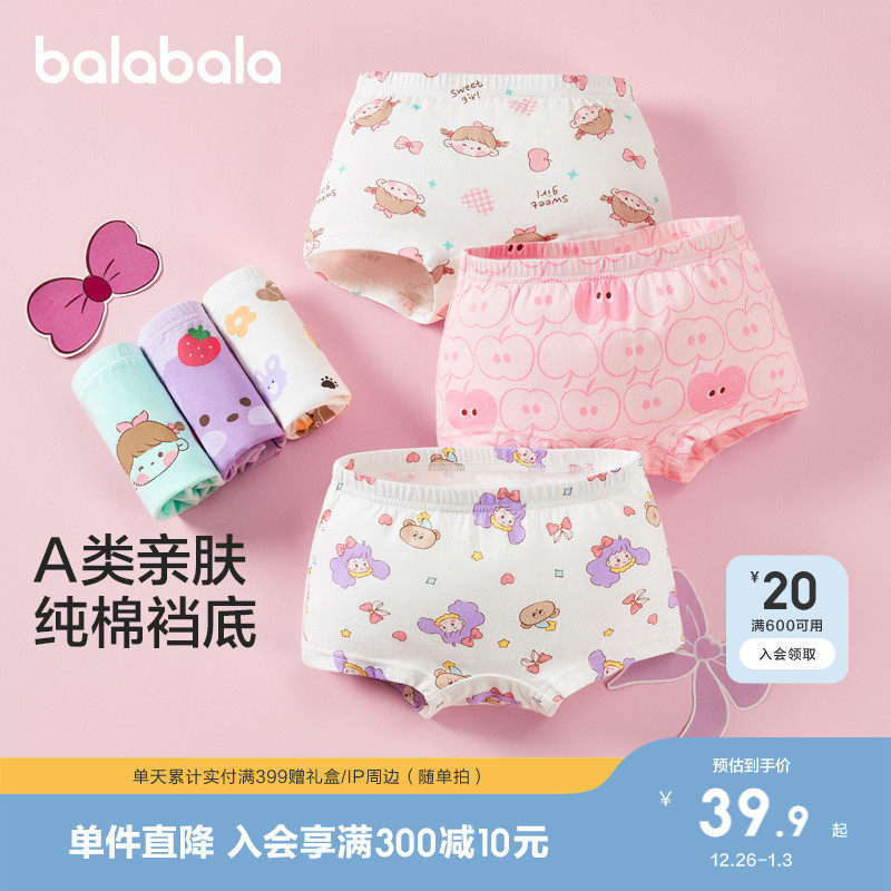 巴拉巴拉宝宝内裤棉a类女童平角短裤男小童宝宝亲肤四角裤三条装