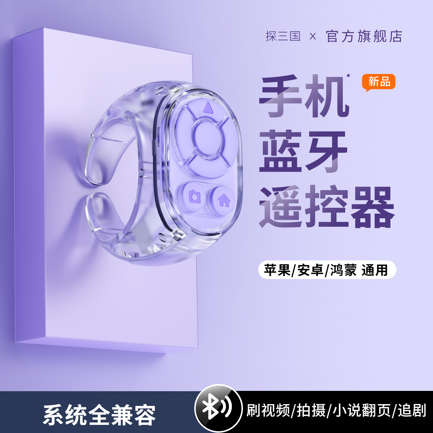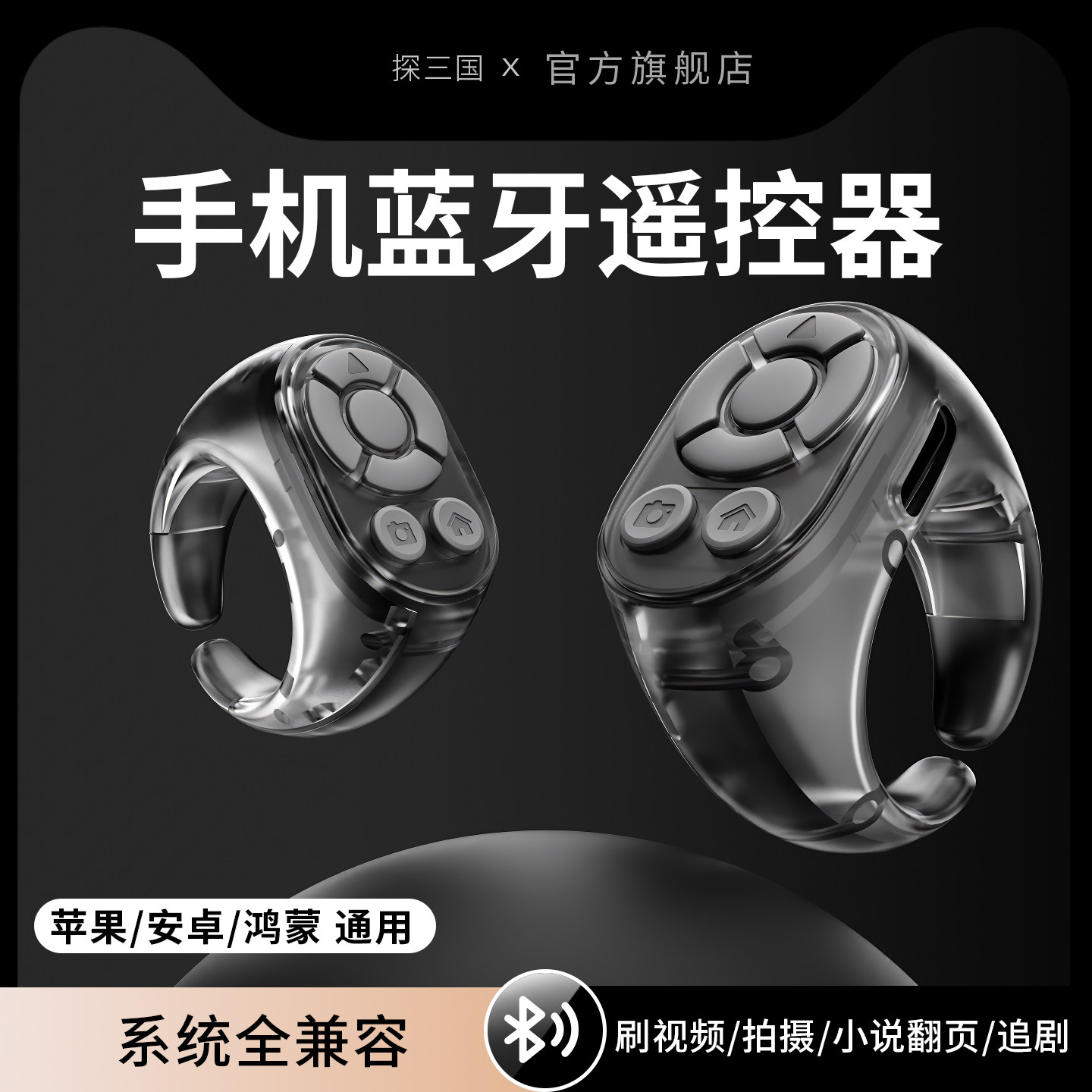 手机蓝牙遥控器拍照刷抖音短视频看剧小说电子书翻页神器自拍可变焦适用于苹果鸿蒙通用多功能按钮戒指环懒人