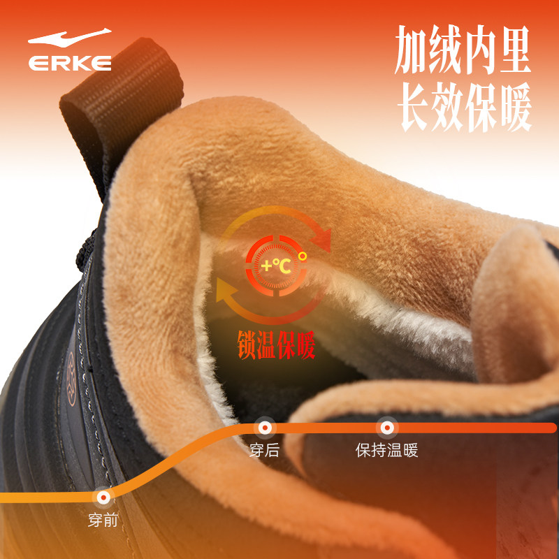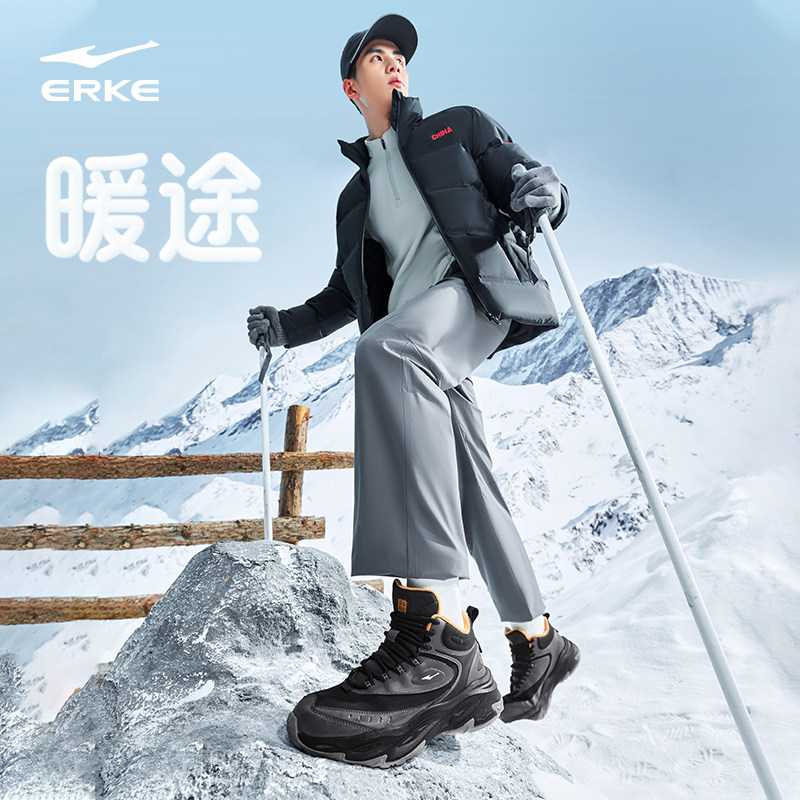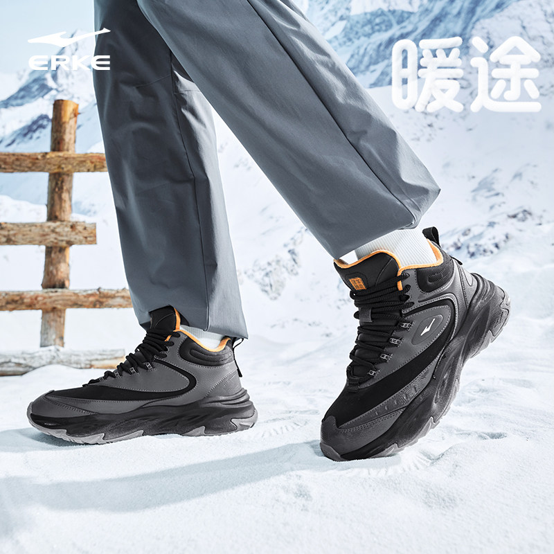 鸿星尔克暖途保暖棉鞋冬季新款休闲鞋加绒男鞋防滑高帮加厚运动鞋