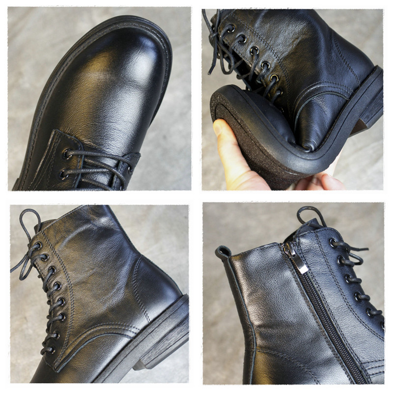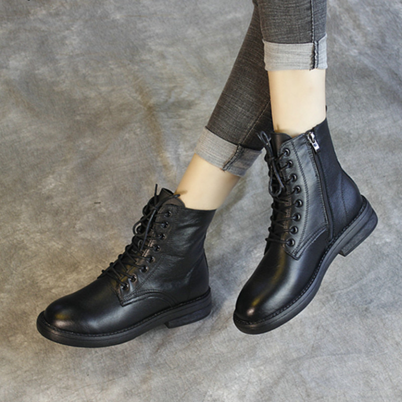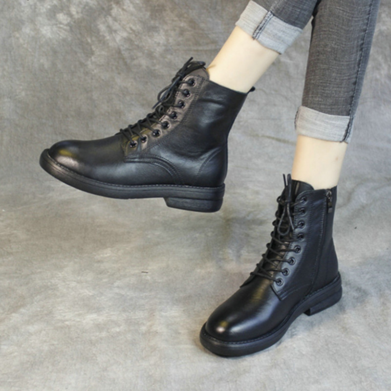 品牌真皮英伦风马丁靴女2025新款春秋时尚百搭平底女靴牛皮黑色