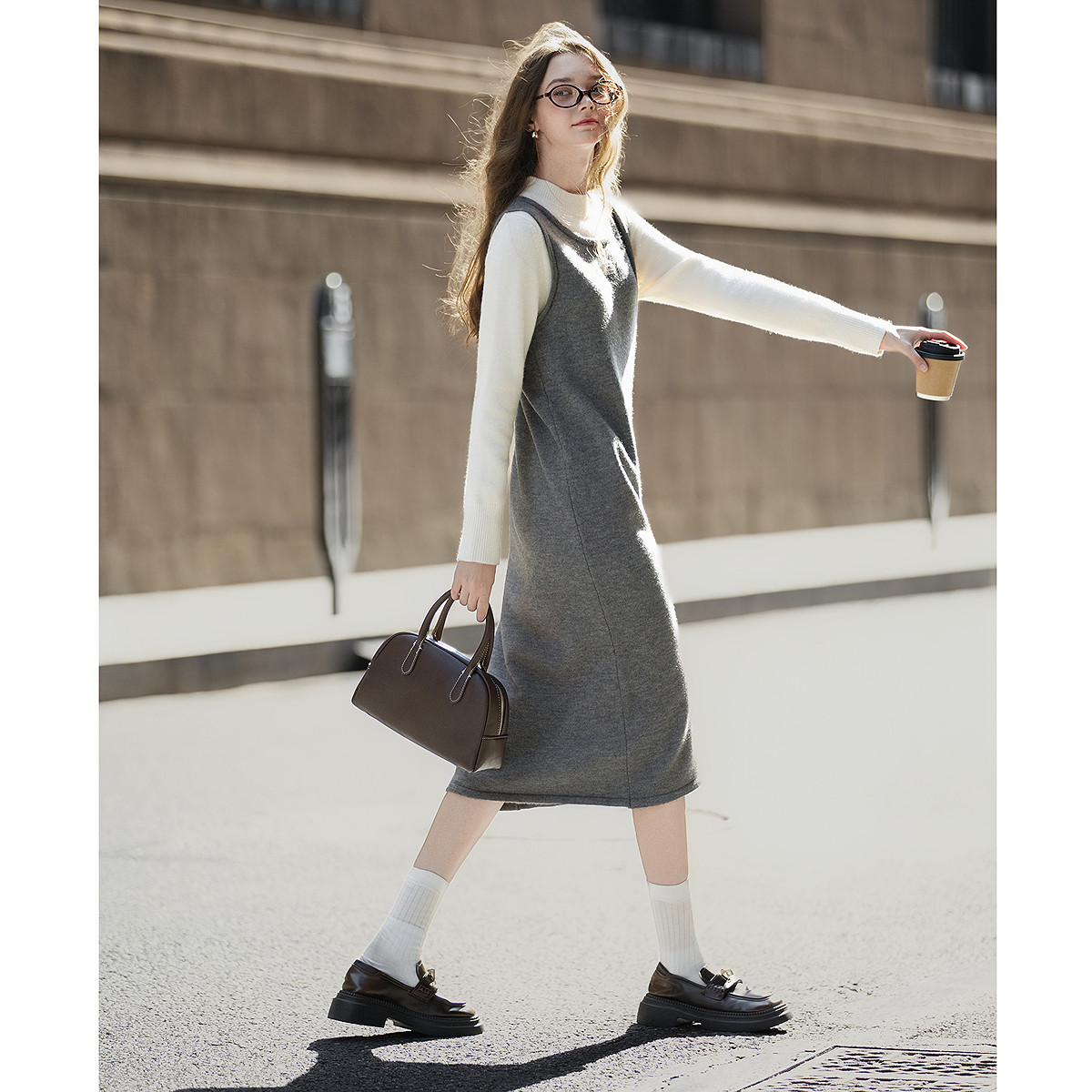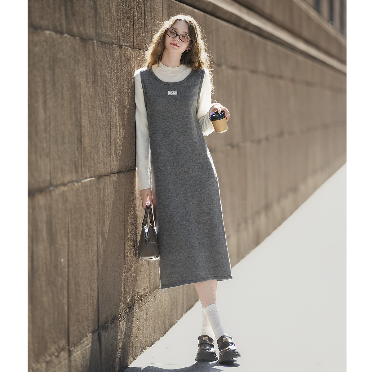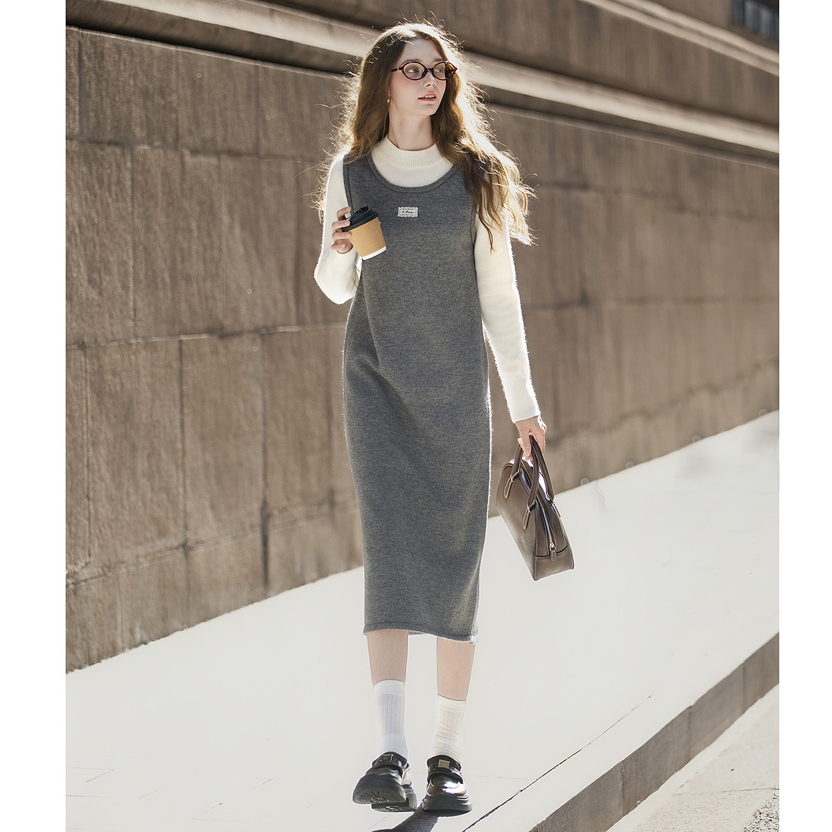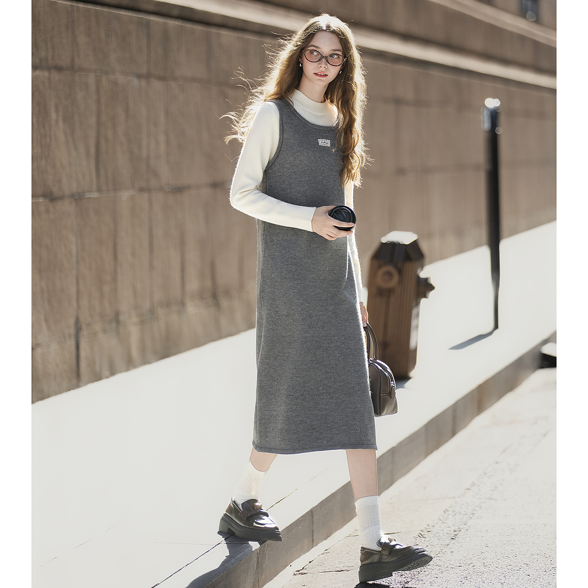 唐狮春秋季半高领长袖连衣裙女净色软糯百搭甜美超好看长裙子tuTA