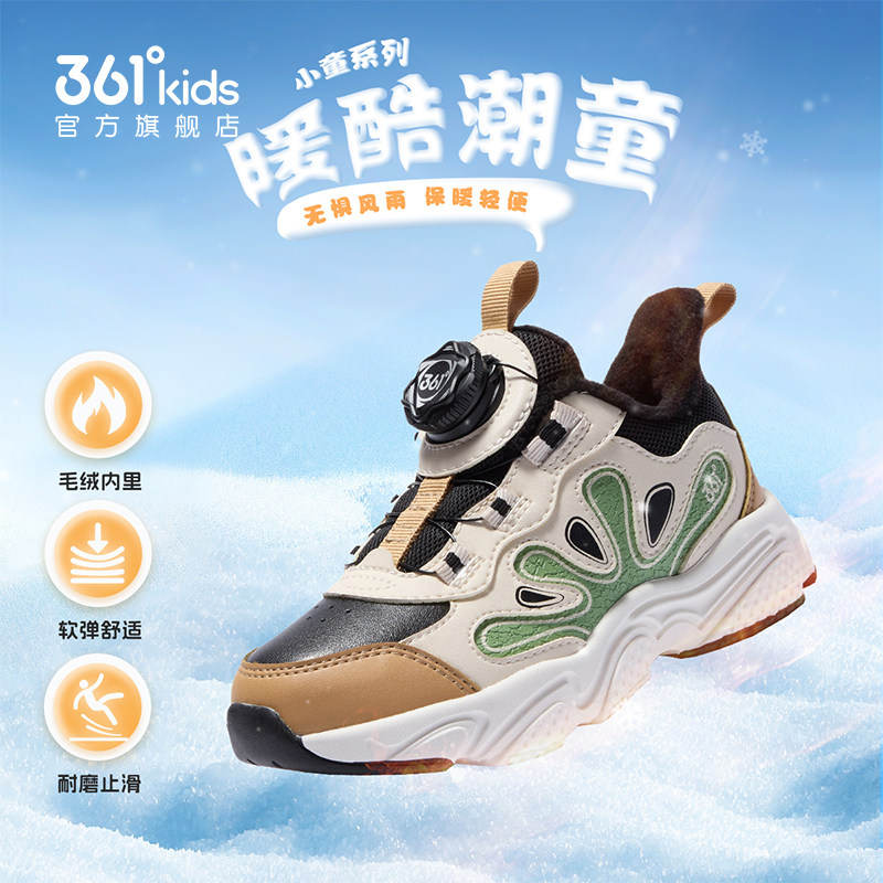 361童鞋男童运动鞋冬季款儿童鞋子小学生男孩加绒保暖革面跑步鞋