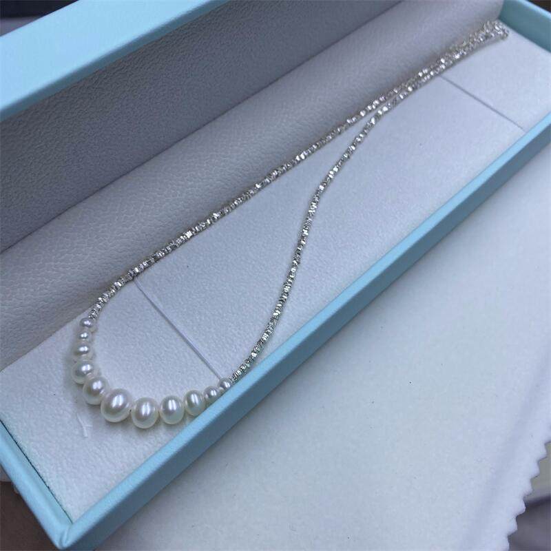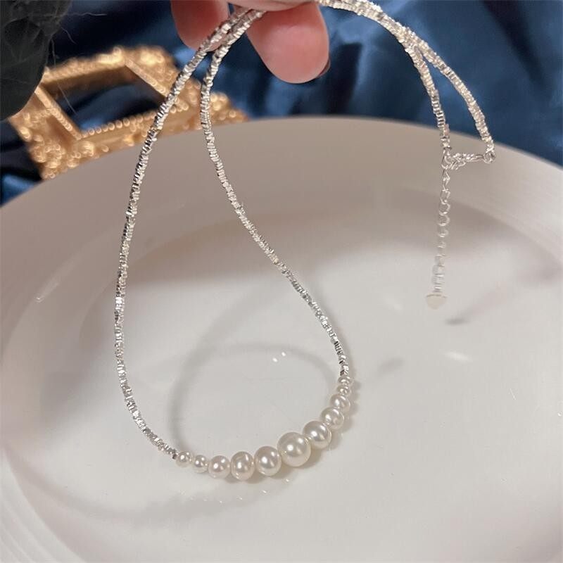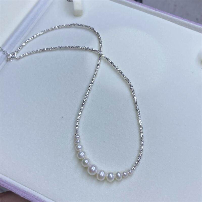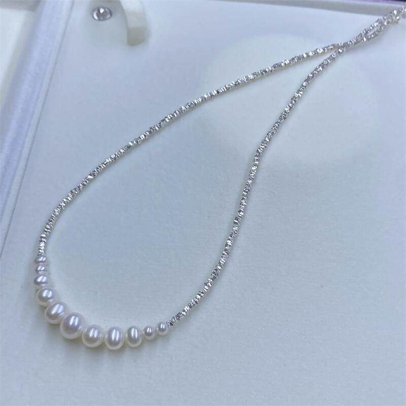 诸暨年轻款珍珠项链S925碎银淡水珍珠正品微笑锁骨链百搭轻奢颈链