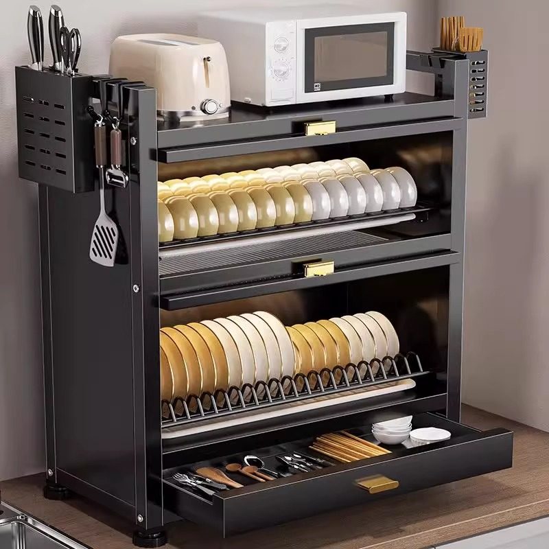 碗碟收纳架厨房置物架碗盘沥水架多功能家用放碗架碗柜碗筷收纳盒