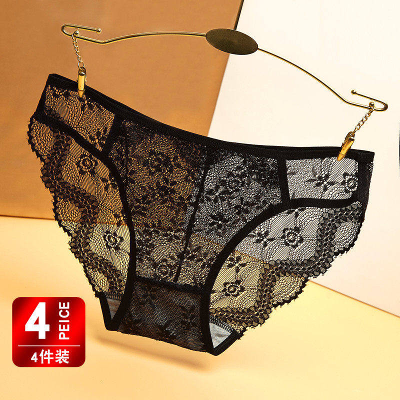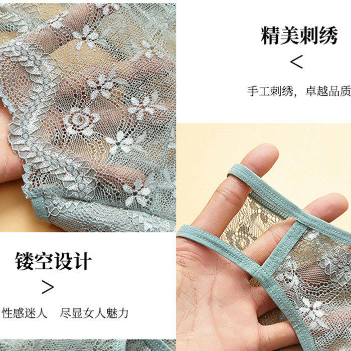 美古今收腹提花蕾丝网纱透明性感内裤无痕低腰棉裆镂空诱惑女内裤