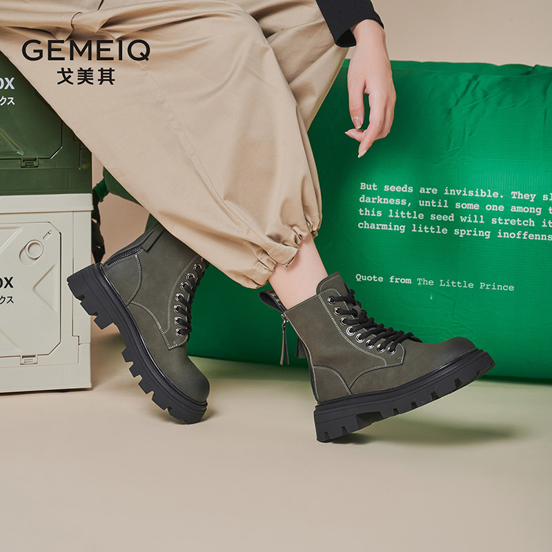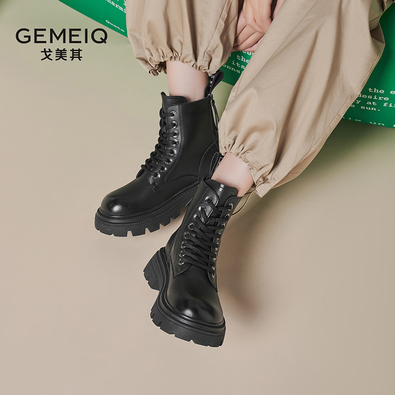 戈美其英伦风马丁靴女款舒适春季新款厚底中筒机车靴经典大头短靴