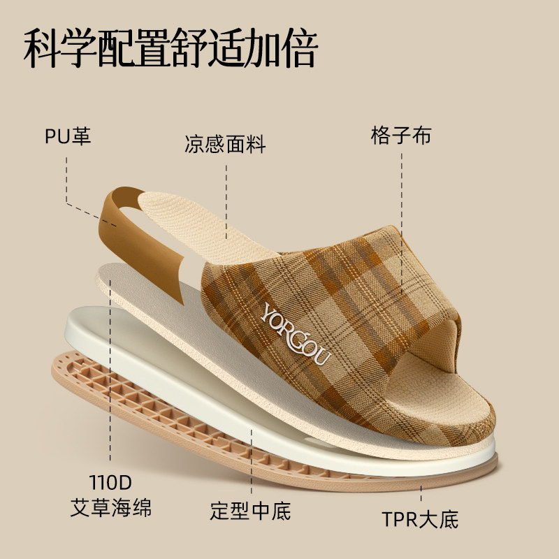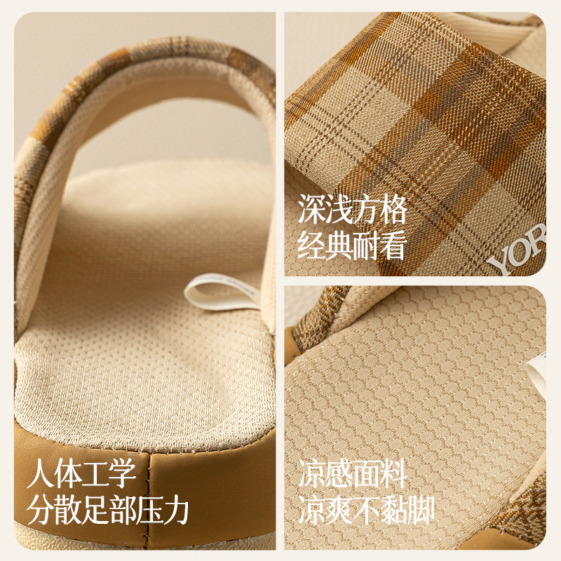 高级感居家布艺凉拖鞋四季女室内厚底防滑男透气吸汗防滑棉麻抗菌